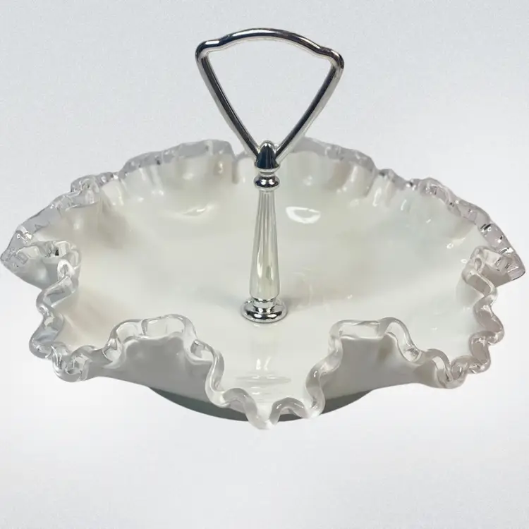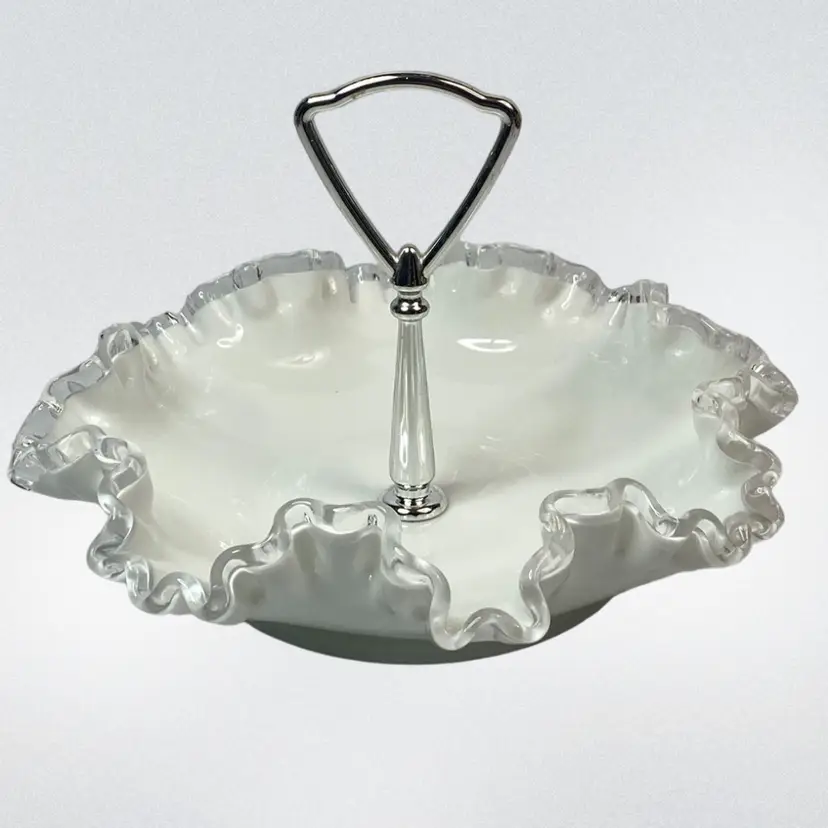 Fenton Glass Silver Crest Tidbit Bon Bon Dish Vintage