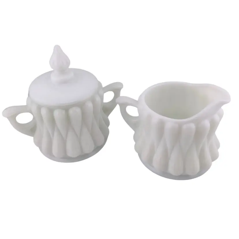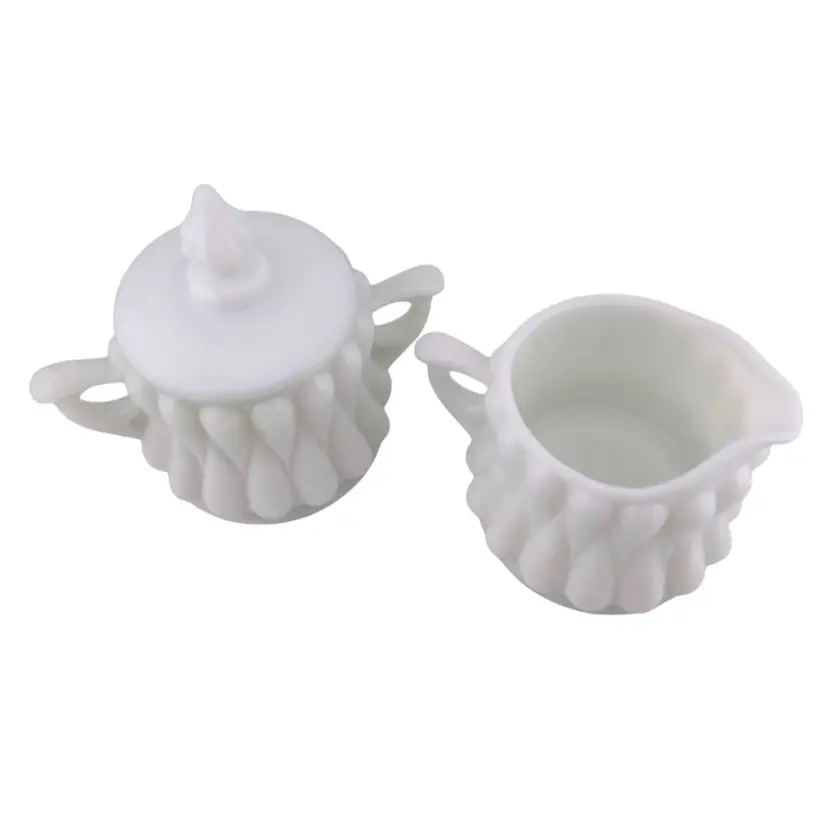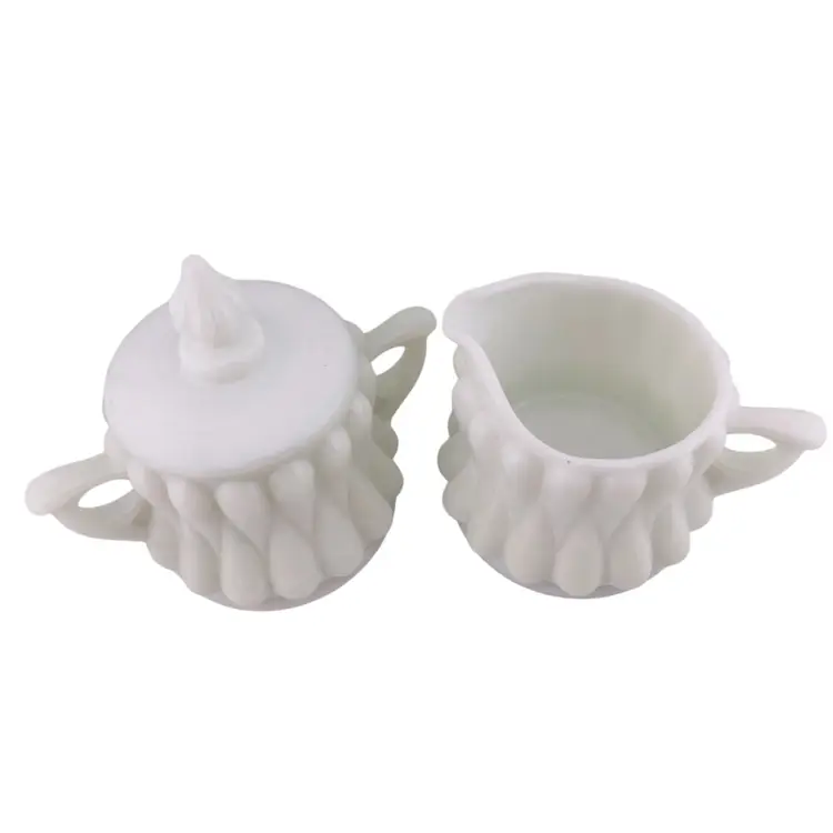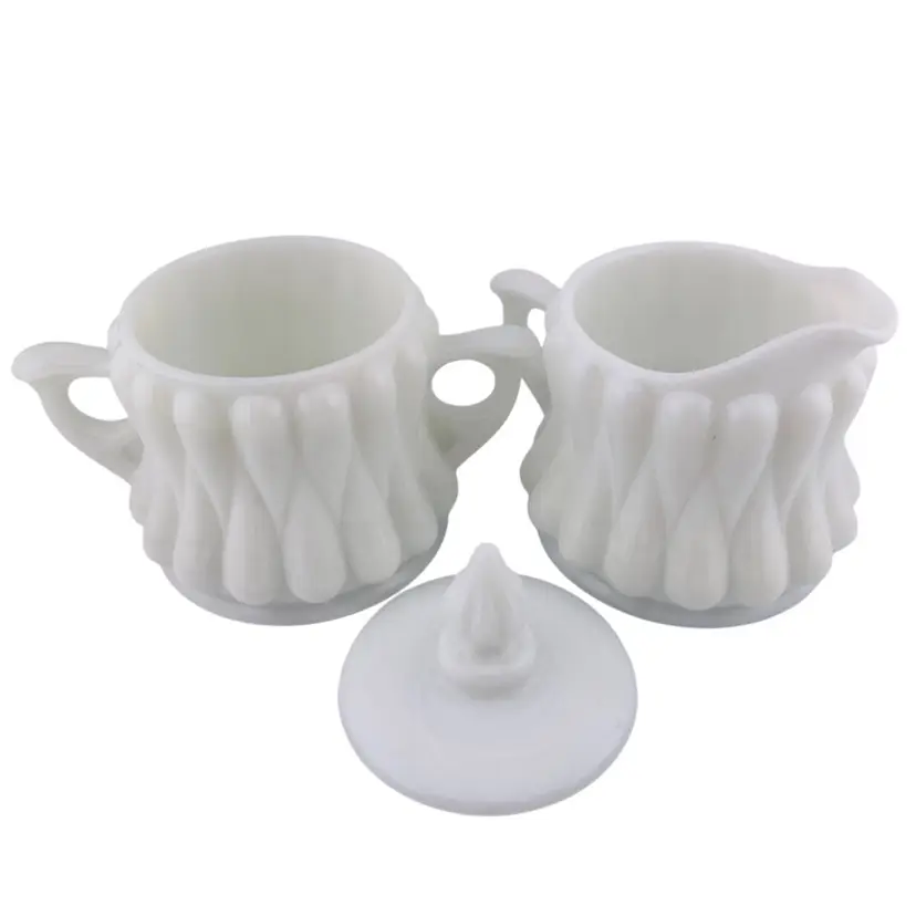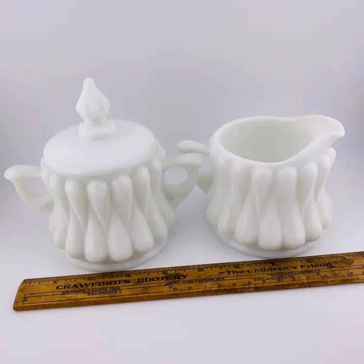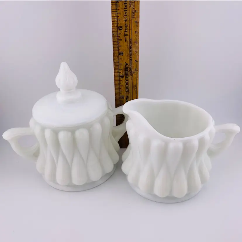 Vintage Fenton Tear Drop Sugar Creamer Set Milk Glass 1950s