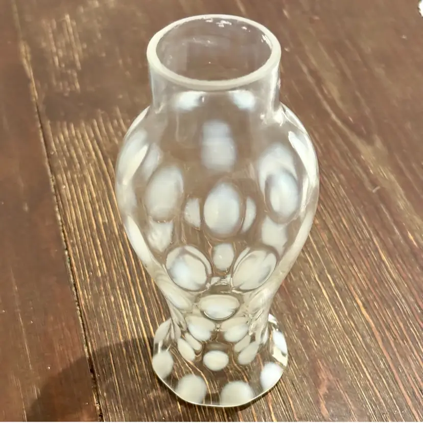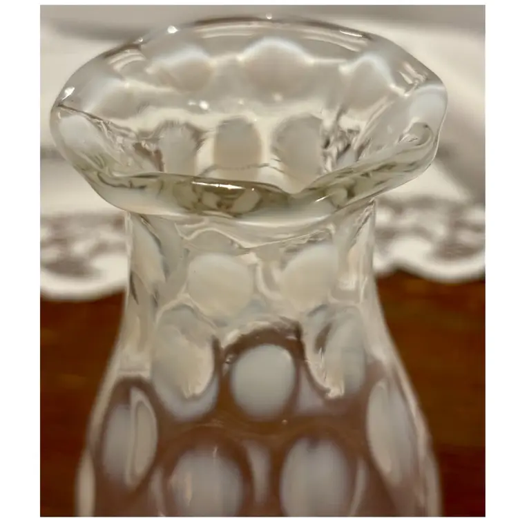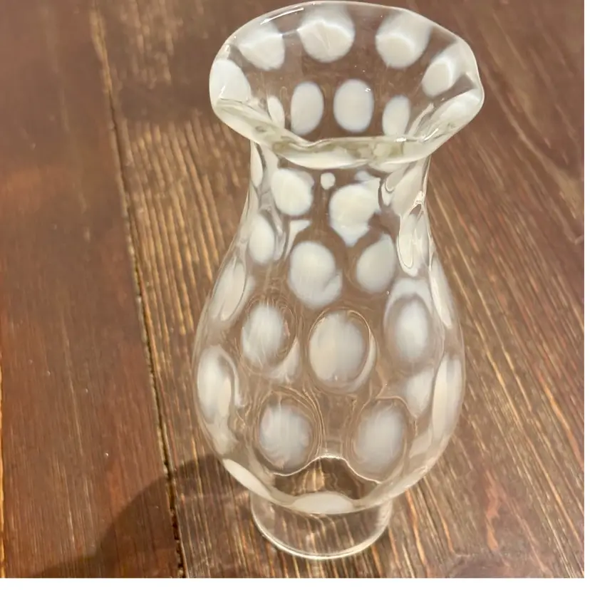 Vintage Fenton White Coin Dot Glass Hurricane Globe 6” Opening to fit on lamp is 1.5”