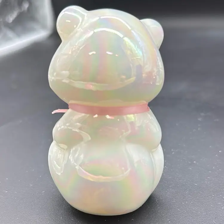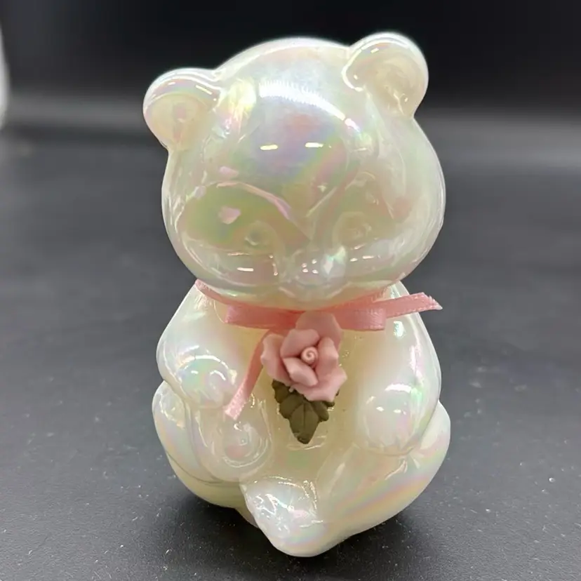 Vintage FENTON White Iridescent Opaline Glass Bear