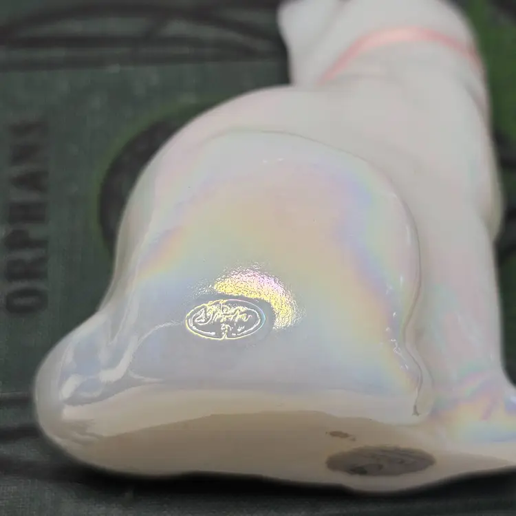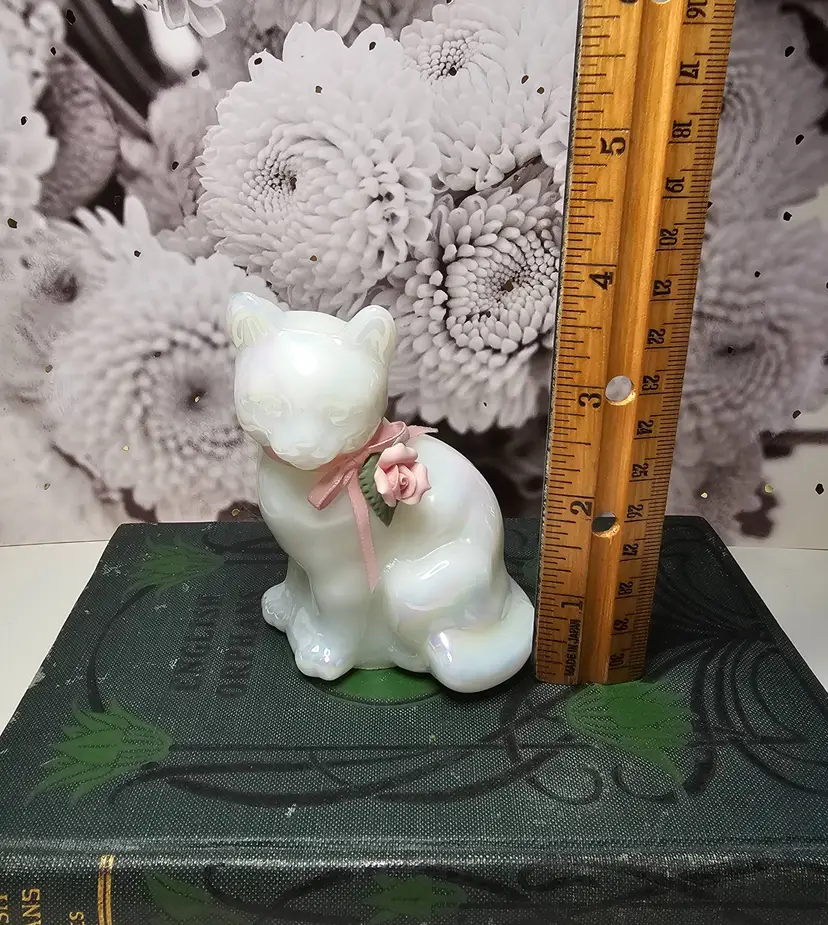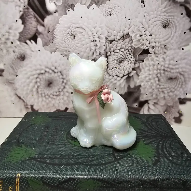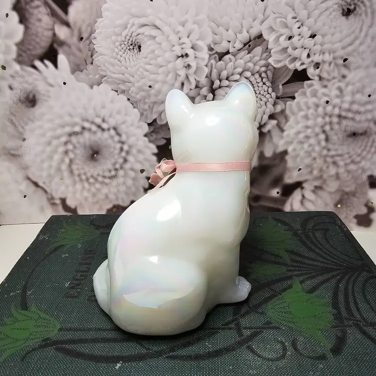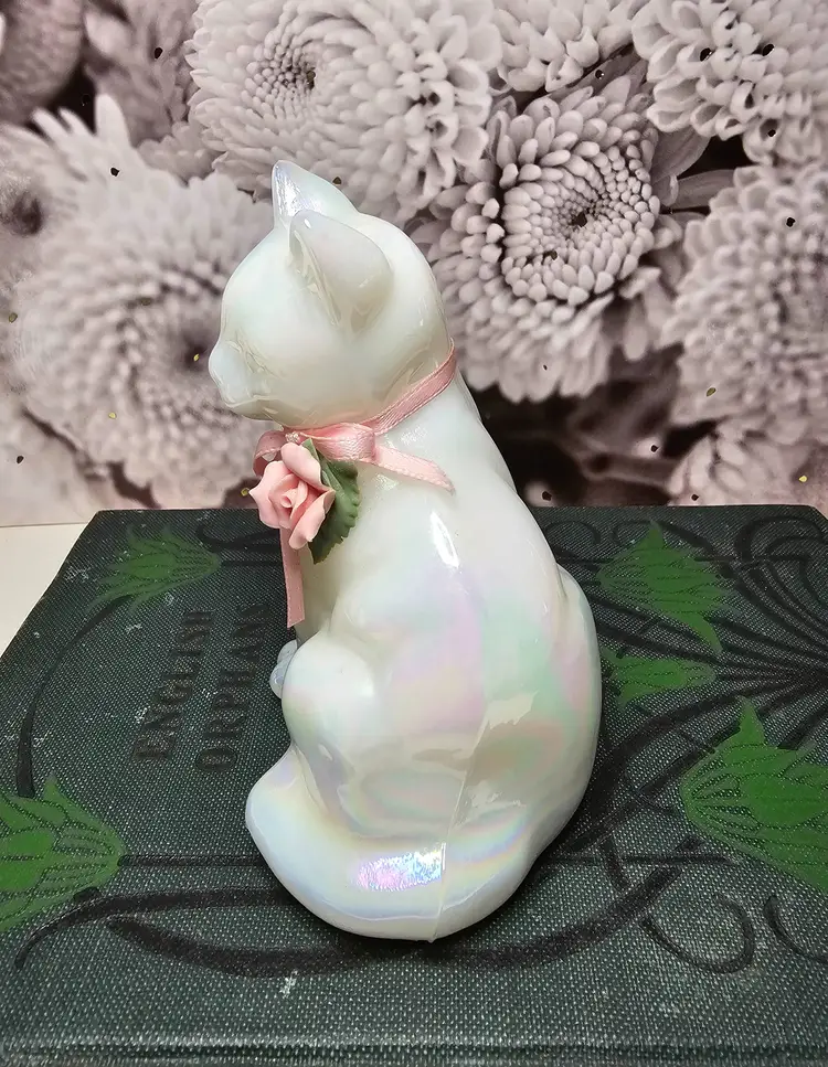 Lovely condition with no chips or cracks. Embossed with the Fenton logo. Its original Fenton sticker is attached but has some wear. Measures about 3" wide x 3-1/2" tall.