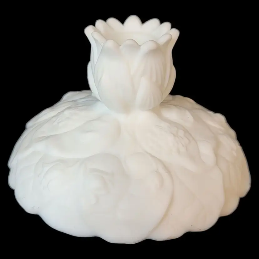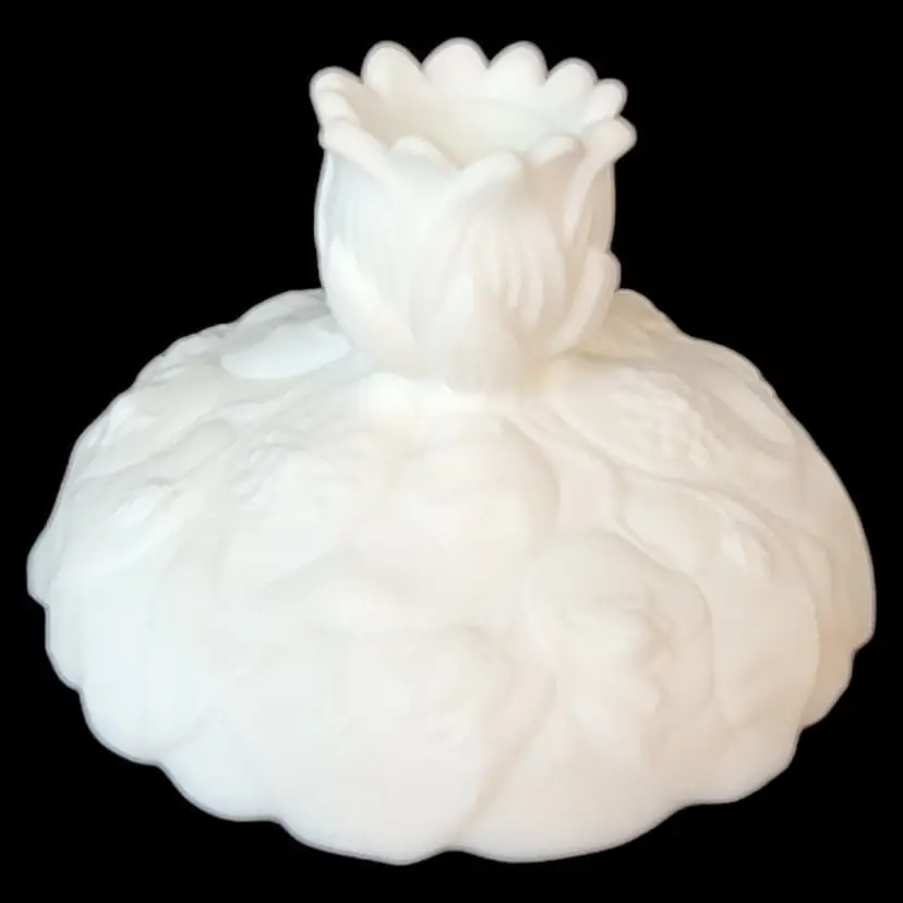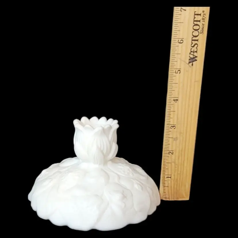 – Brand: Fenton – Type: Candlestick – Color: Satin White – Material: Glass – Production Style: Art Glass – Subject: Lilies – Vintage: Yes