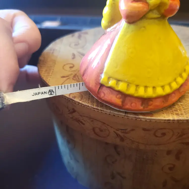 This is a cute vintage figural tape measure. No damage. Approximate measurements in photos. Original sticker on bottom.