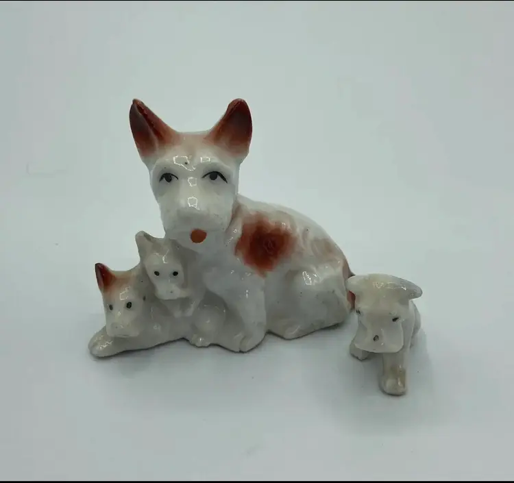 Vintage Scottie Dog With Puppies Scottish Terrier Lot Japan Ceramic. Condition is "Used".