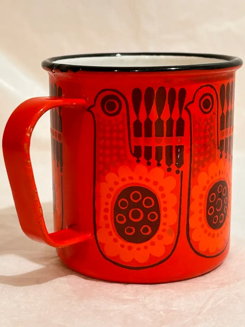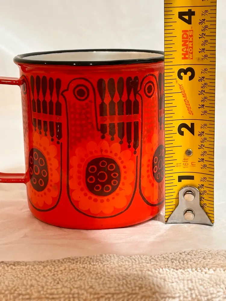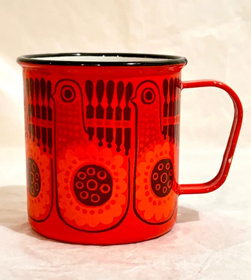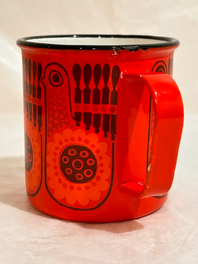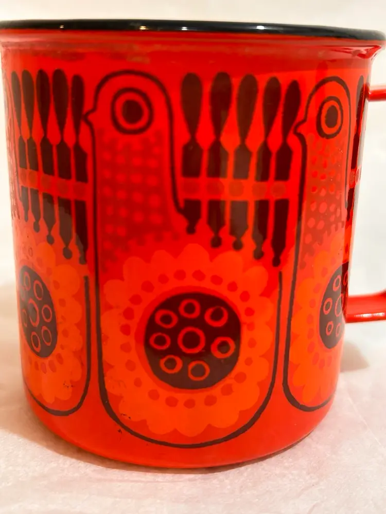 This mug is a significant piece of Finnish design history. The vibrant red color and charming, retro bird pattern add a touch of mid-century modern style to any kitchen or collection. I have included photos at all angles so please be sure to view them for further inspection. smoke/pet free home no rust. ** my listings will show other collectible Vintage mugs and drinkware.