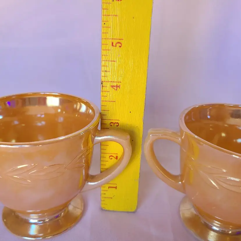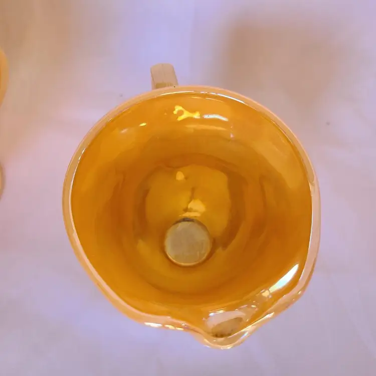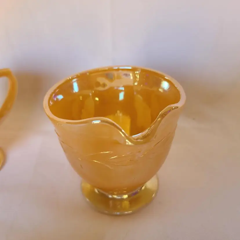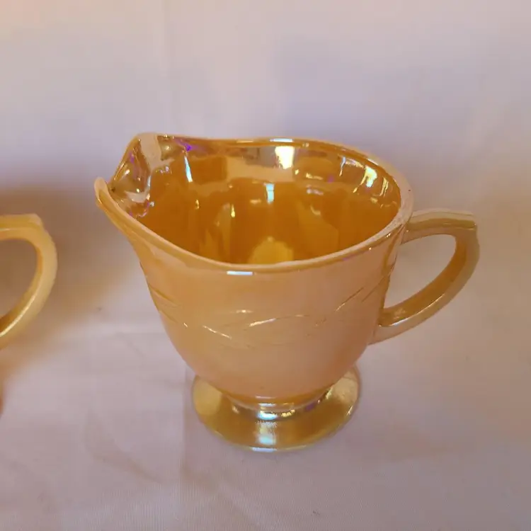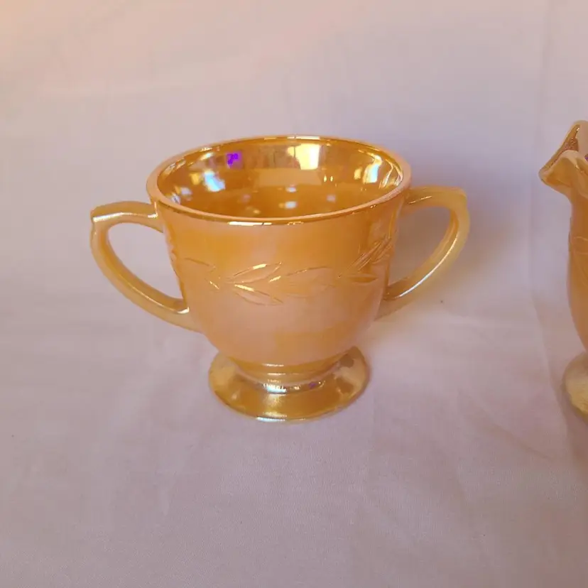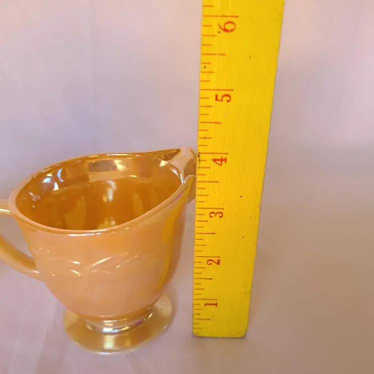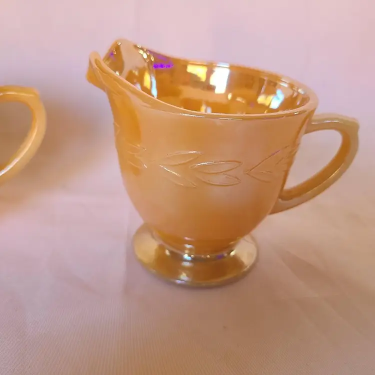 Vintage Fire King Ovenware Peach Luster Sugar and Creamer Set • Made in USA • Laurel Leaf Patrern • In great pre-owned condition