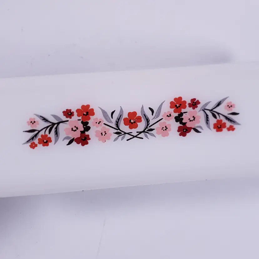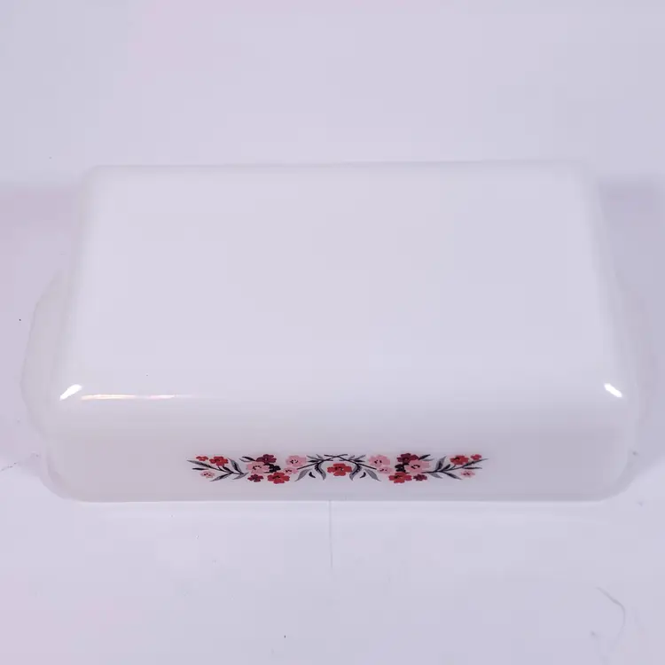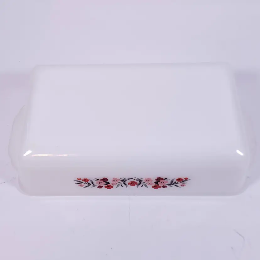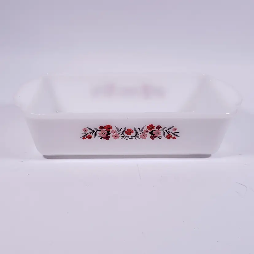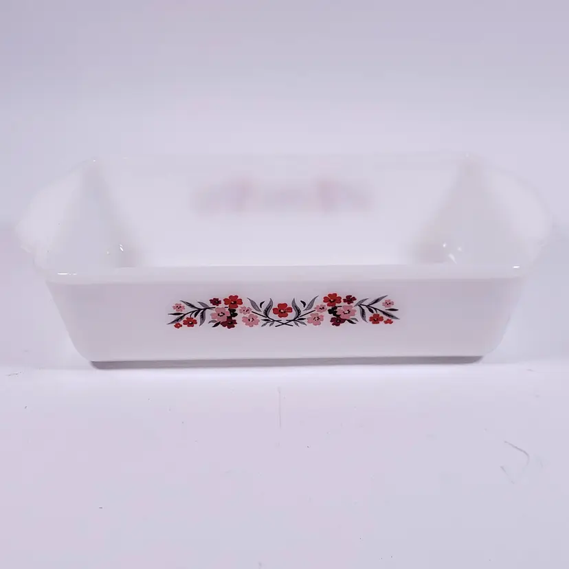 Vintage FIRE KING Primrose 409 Pink Red Floral Milk Glass Casserole LOAF PAN