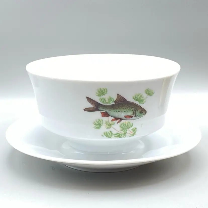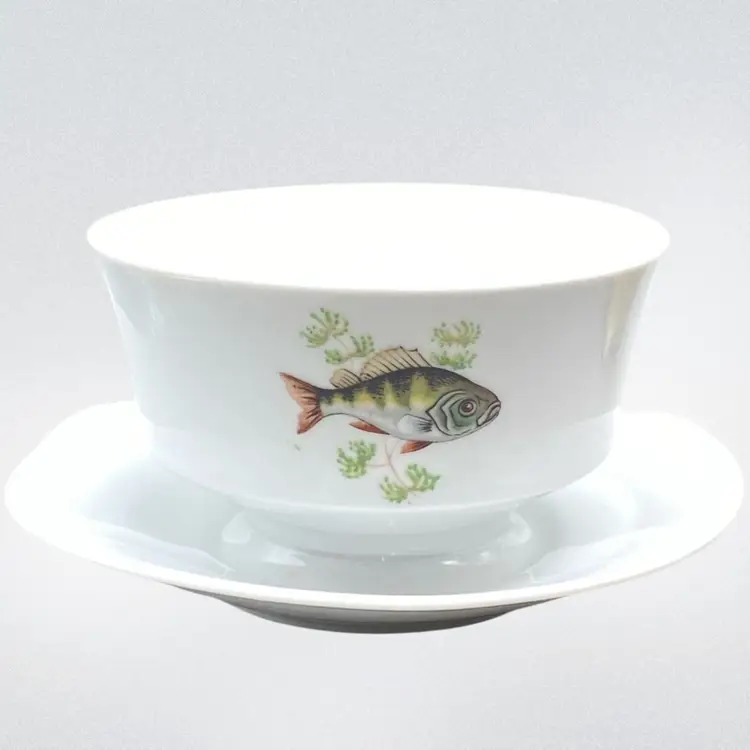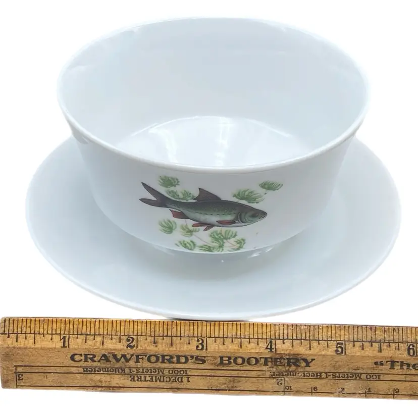 Vintage Fish Dish Bavaria Germany Porcelain With Under Plate Nautical Sea Saucier