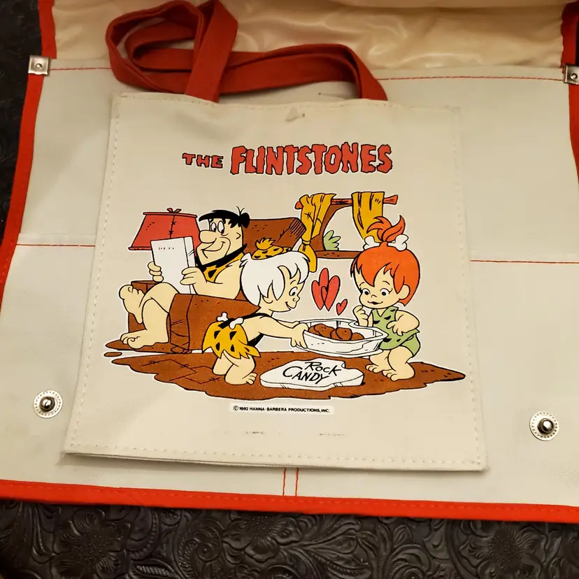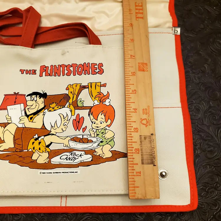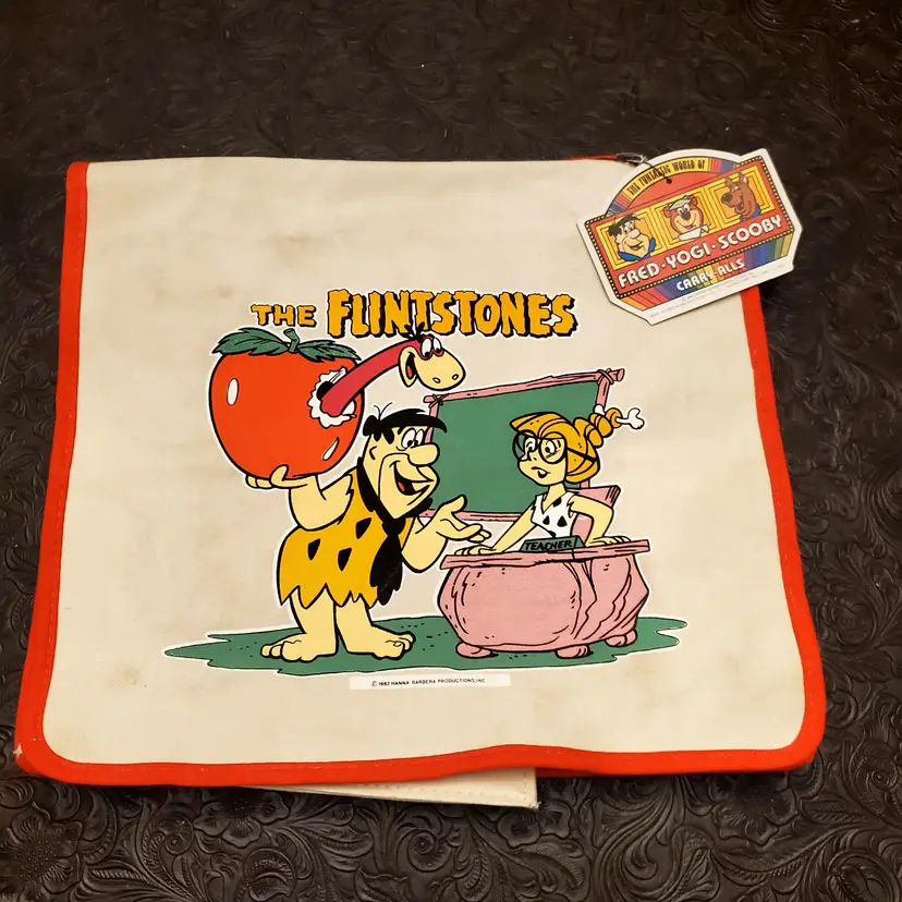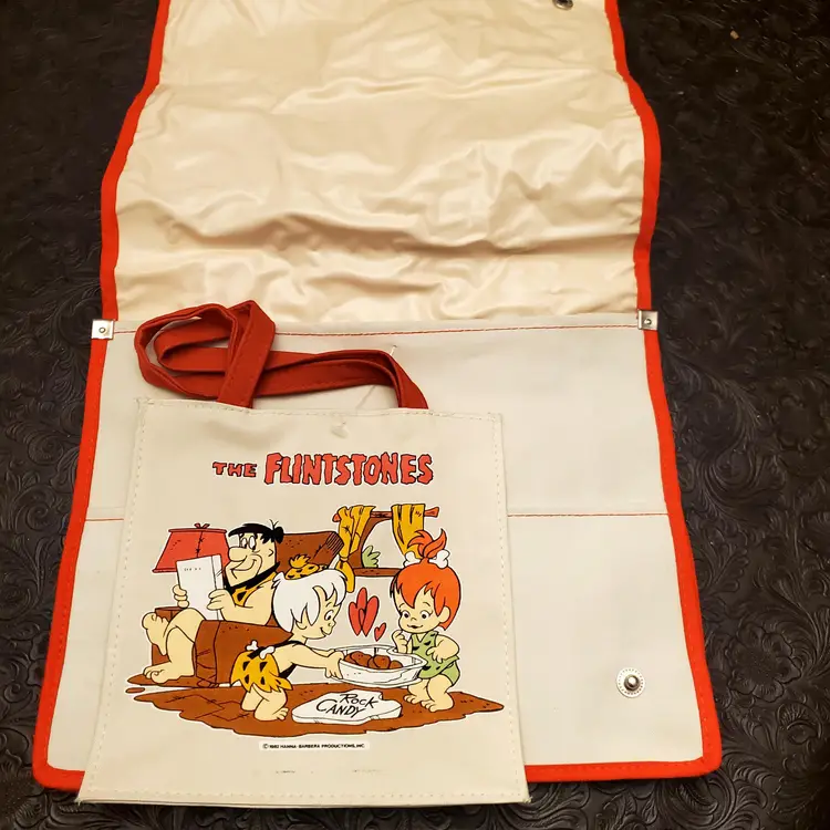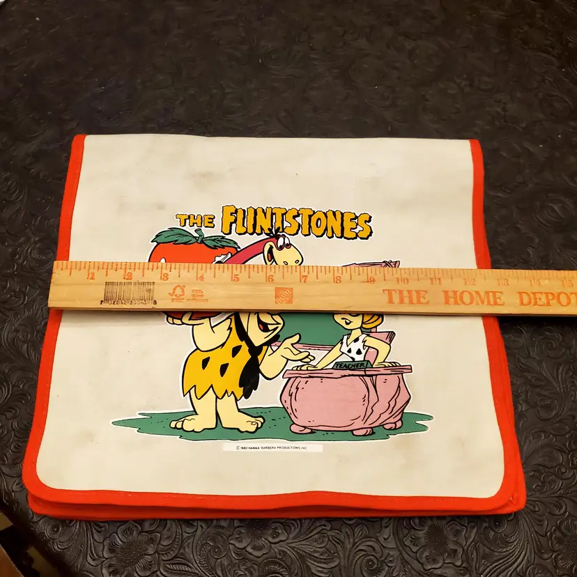 This is a cute vintage canvas backpack and small tote bag featuring Flintstones characters. Approximate measurements in photos. Some staining on the front of the bag as shown in photos. Smoke free home.