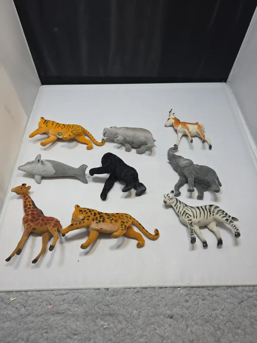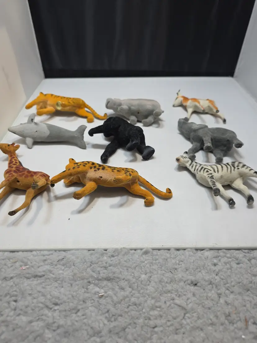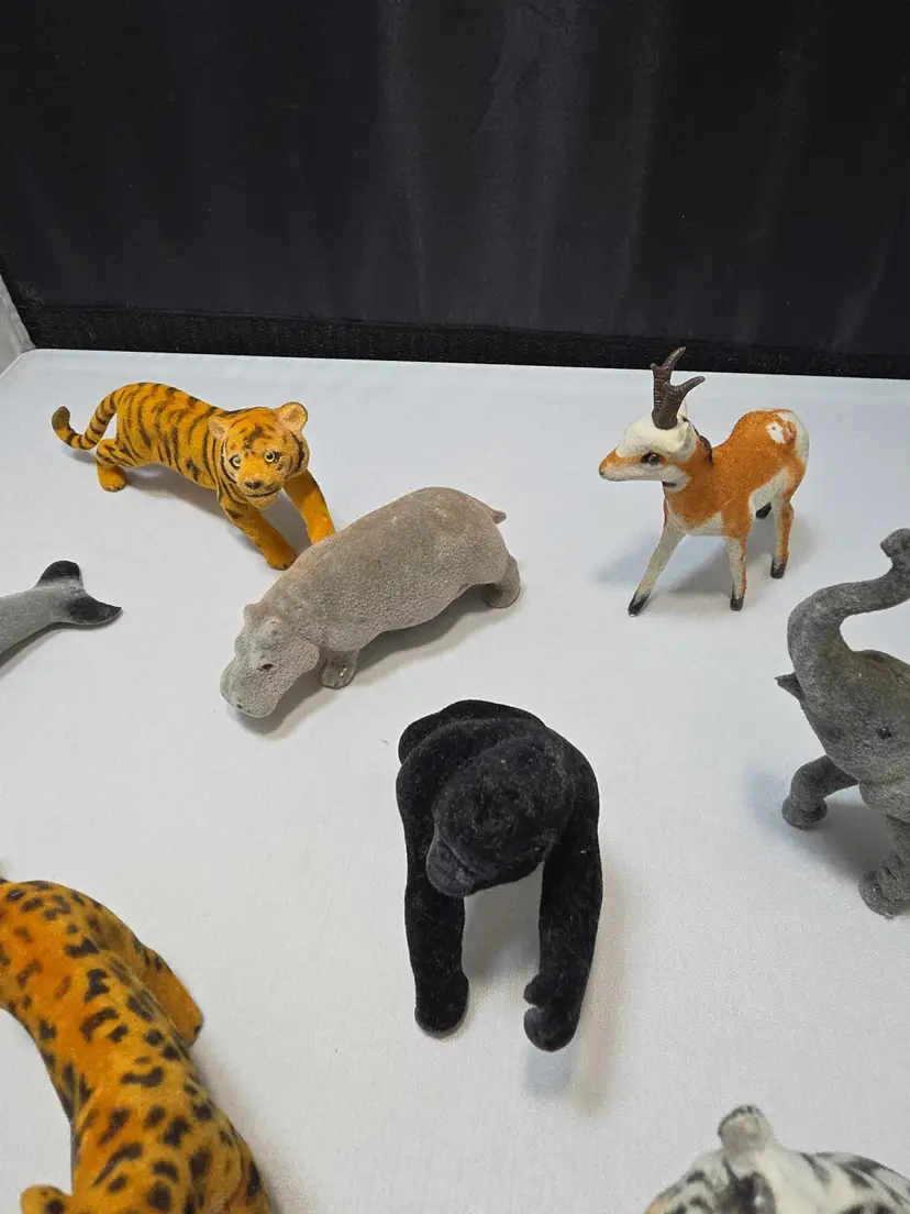 Vintage Flocked Animal Figurine Lot of 9 Zoo Wildlife Figures