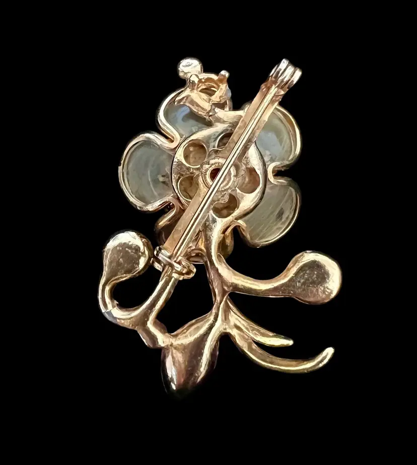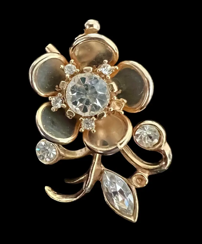 Vintage Floral Brooch Pin Gold Tone Clear Rhinestones #B-7