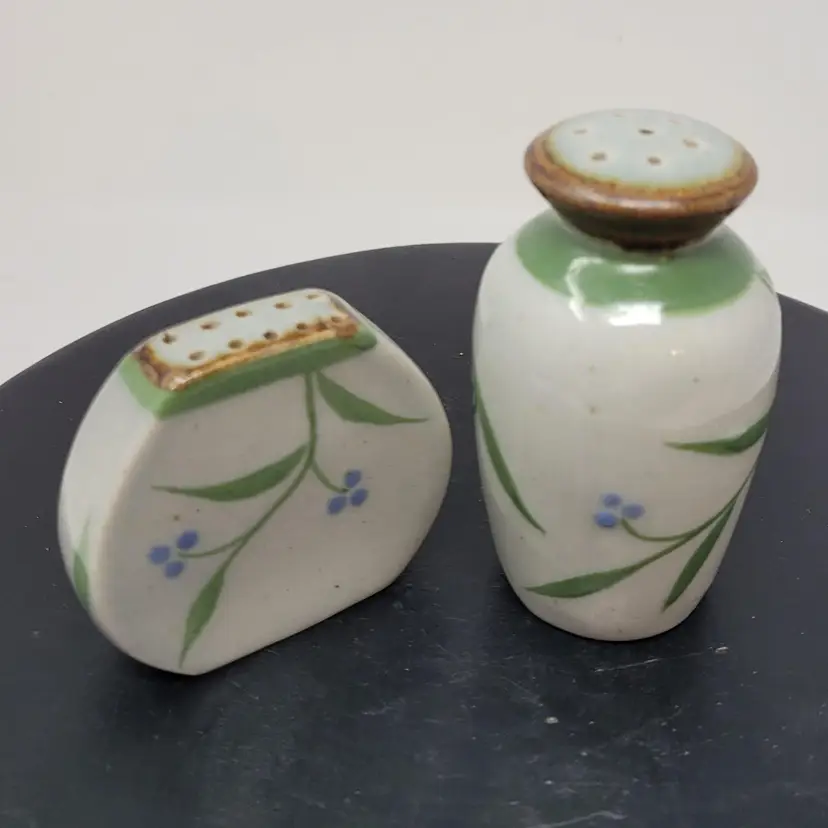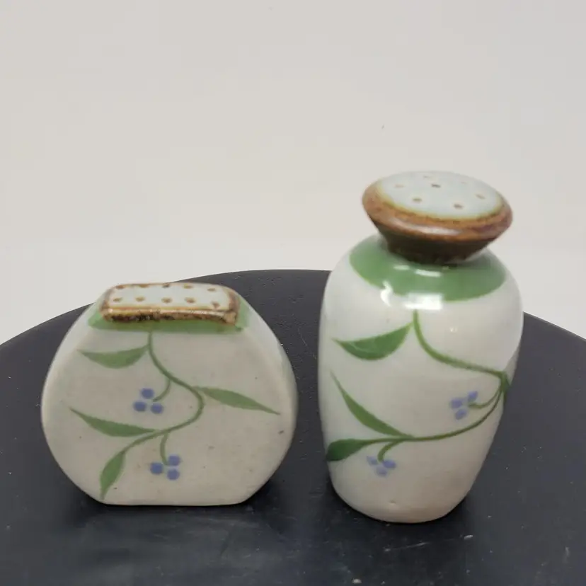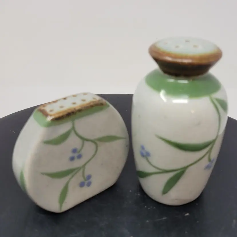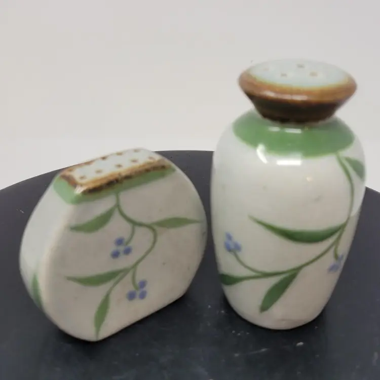 Add a touch of charm to your dining table with these vintage ceramic salt and pepper shakers. Featuring a delicate floral design, they bring a hint of nostalgia and elegance to any meal. Perfect for collectors or as a unique kitchen accent.