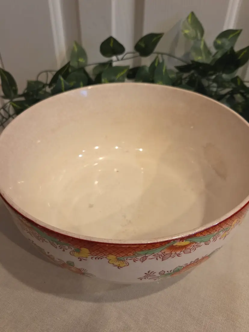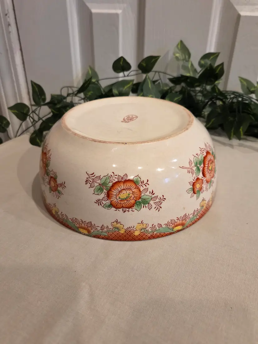 Brighten up your table with this vintage floral ceramic serving bowl. Its vibrant flower patterns and warm tones make it perfect for adding a touch of retro charm to your dining experience.