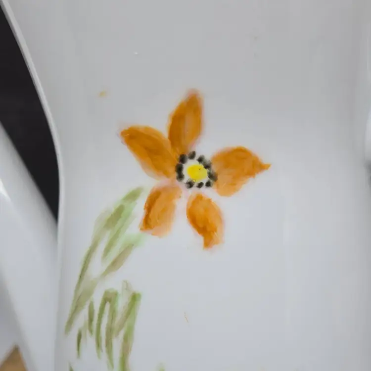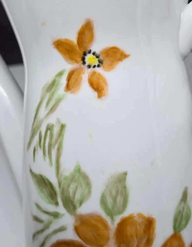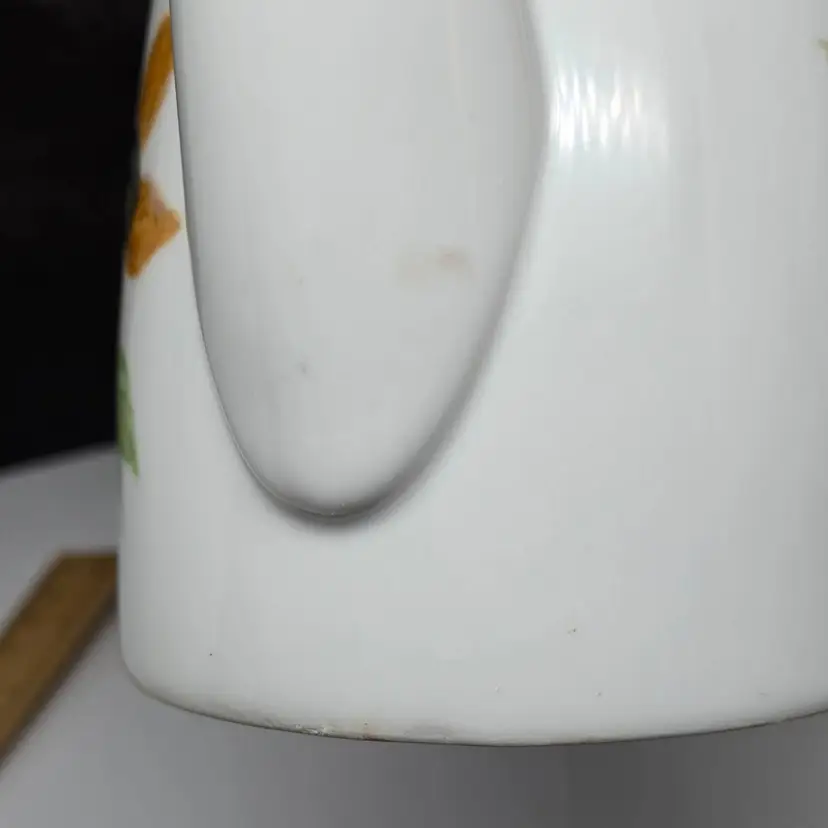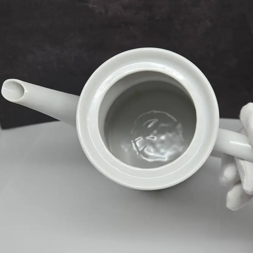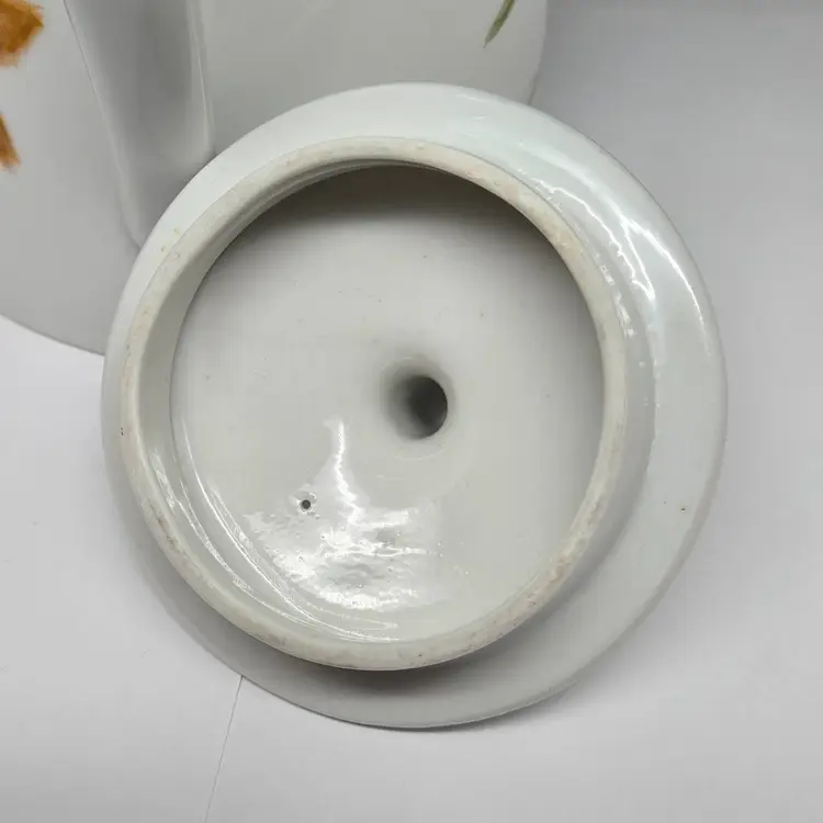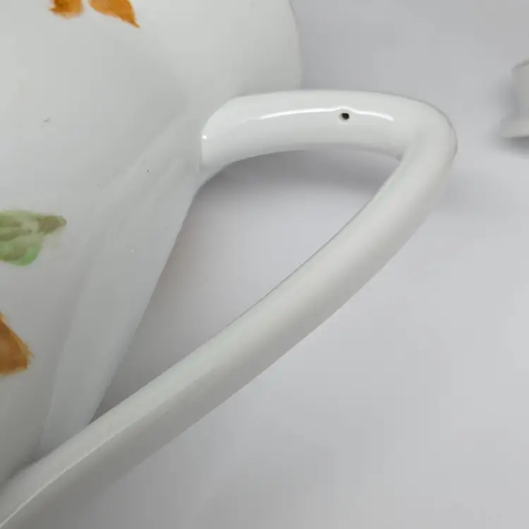There are no chips or cracks. Some marks on the around the teapot are seen which seems to be paint as it is below the glaze. There are 'hole' marks, seen in the photos.