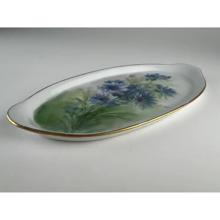 The Charlie B Gallery of Carson City, Nevada is offering this floral decorated porcelain tray. This item likely dates to the 1950's or earlier. This was just found in a rural Nevada collection.