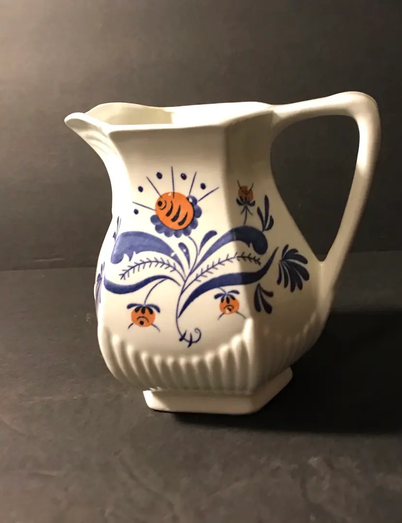 There is a chip on the spout but can’t just let these great items go to land field. Would even b perfect for small planter. The round shape, painted backstamp, and production ceramic style all add to its authenticity and charm. Perfect for serving cream or milk at your next meal, this unique piece is a lovely representation of vintage artistry from the 1940s.