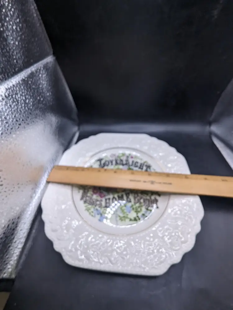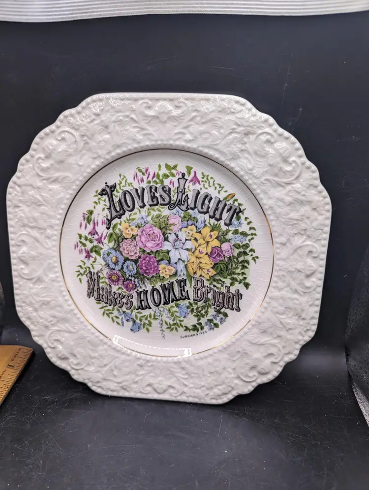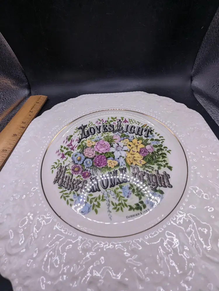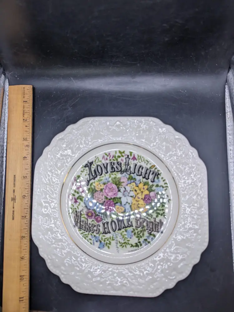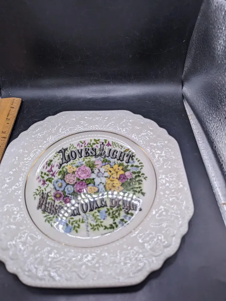 Add a touch of vintage charm to your home with this decorative plate featuring a beautiful floral design and the phrase 'Love's Light Makes Home Bright.' Perfect for collectors or as a heartfelt gift. Please see all pictures for condition and measurements.