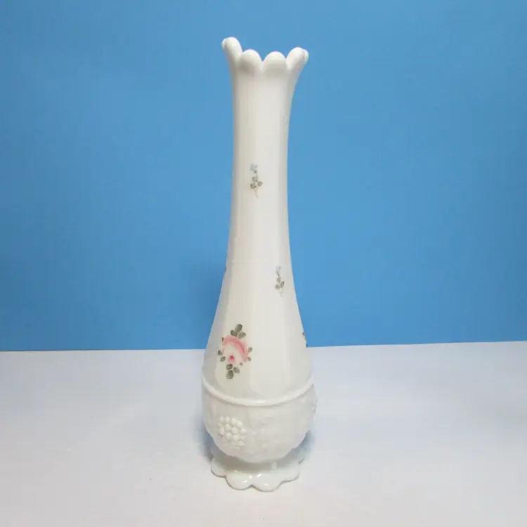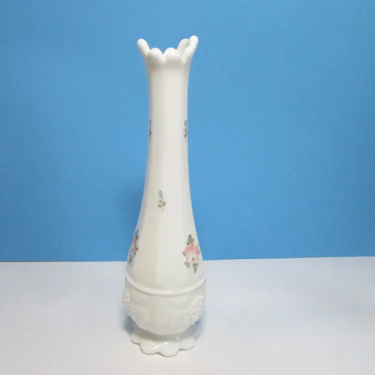 This beautiful vase is in good condition, it is about 10 1/2" tall. We added some pink flowers. This is shipped from a smoke free home. Thanks for looking!