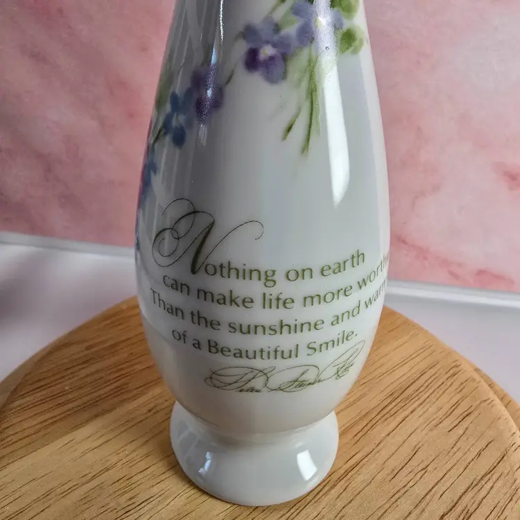 Vintage 6.5" floral vase with quite on the back by Helen Steiner Rice. Great pre-owned. No chips or cracks. See all photos for a more detailed description of the condition.