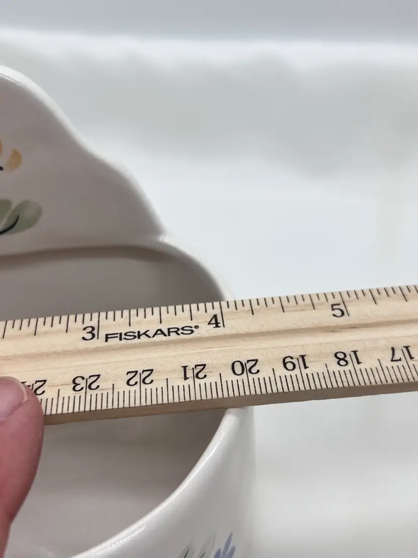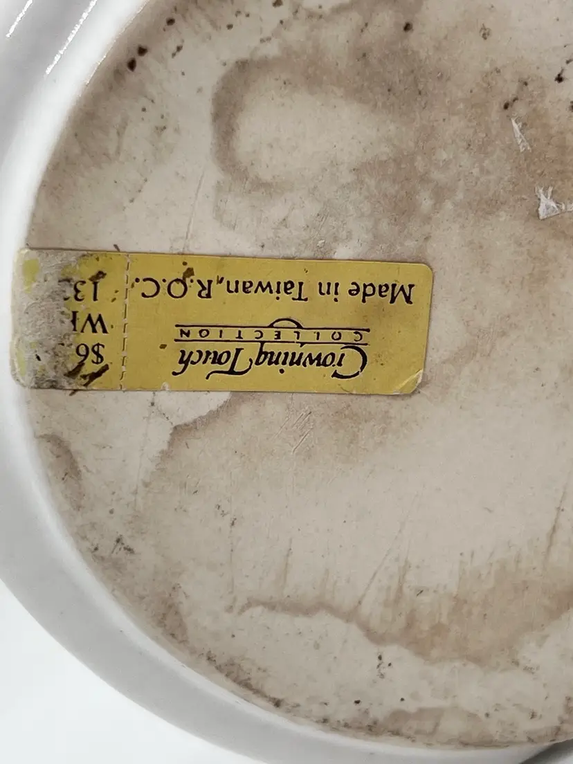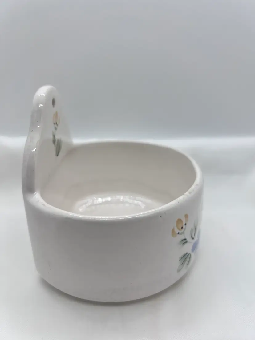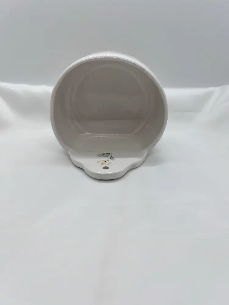 Lovely vintage withe ceramic wall pocket planter or ring holder with hand painted floral design. Crowning Touch Collection