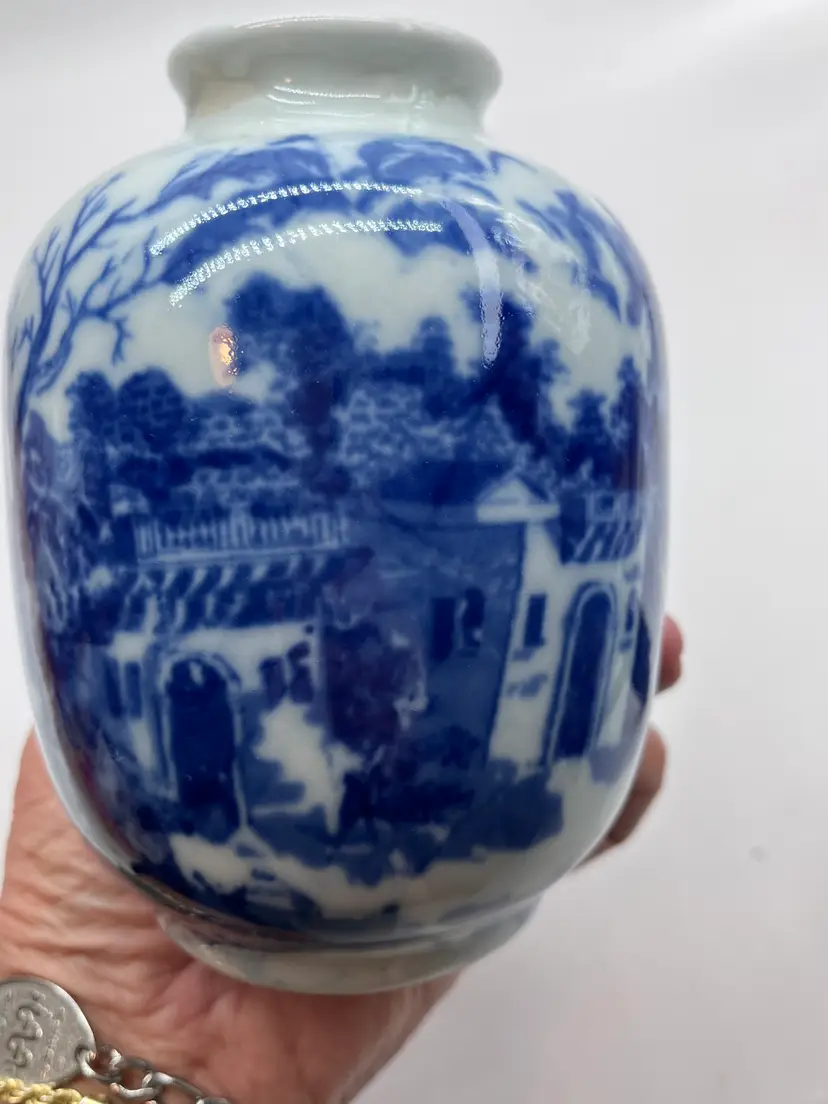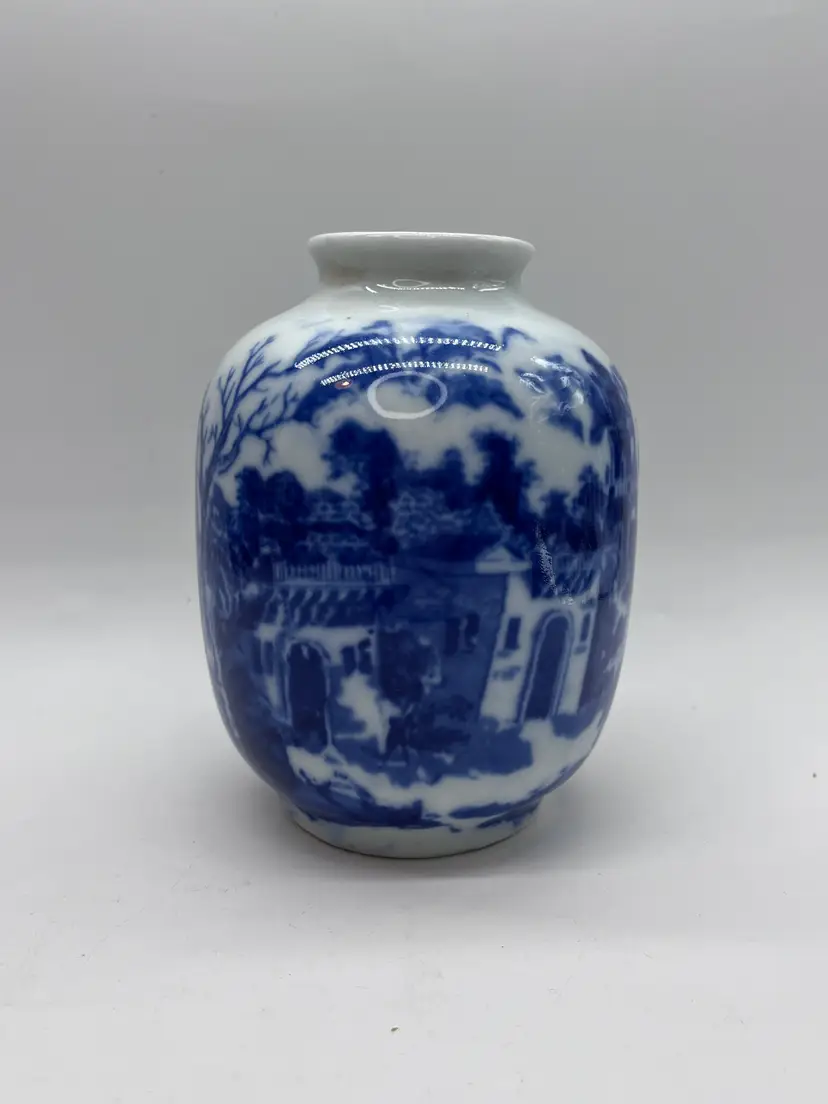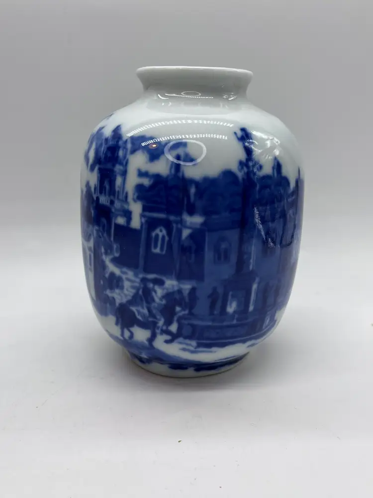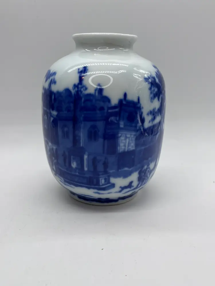 It measures 5.75” high by 4.5” at the widest part of the base, and is in extremely good vintage condition, dating most likely to mid 20th century when reproductions of 19th century flow blue were revisited in popularity. No chips, cracks or damage, and ships from a smoke free pet free home.