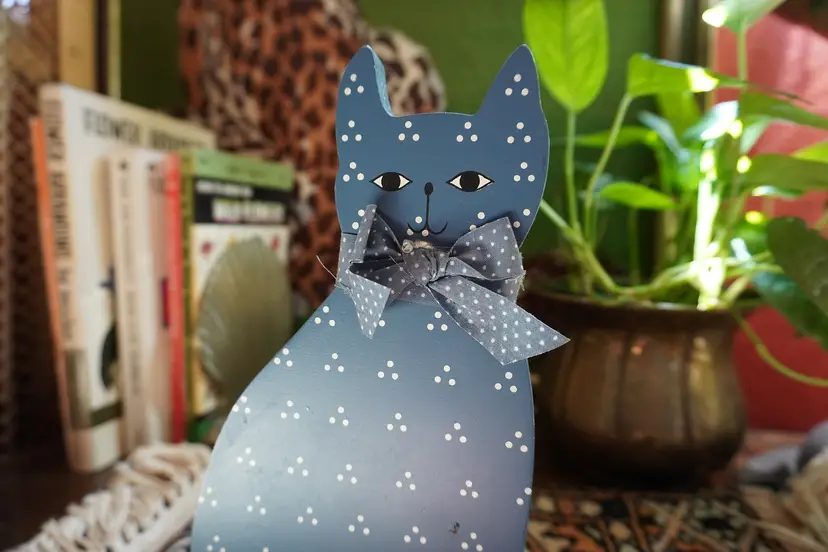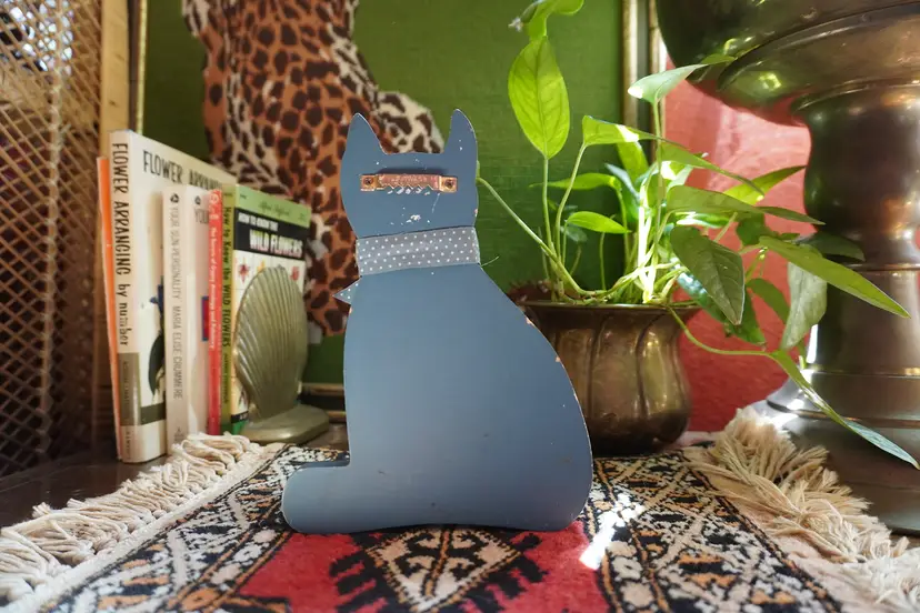 The sweetest vintage wood cat wall hanging perfect for any entryway space. Can be used for keys or to hang jewelry or necklaces.