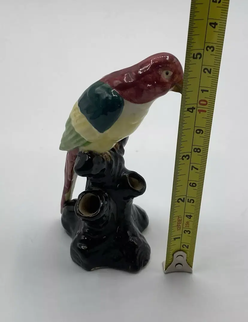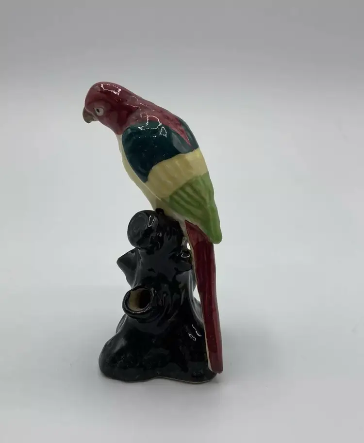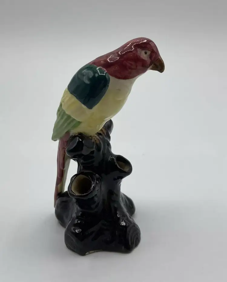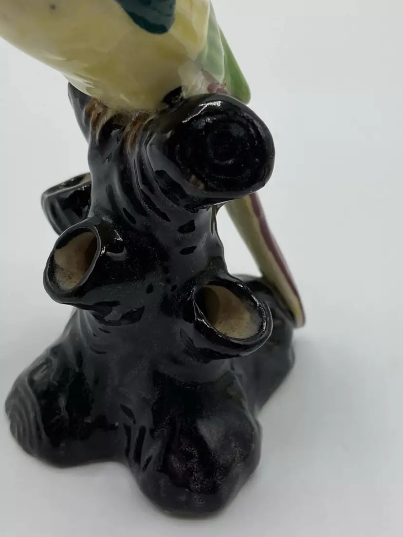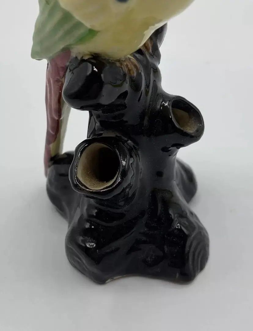 Ceramic Flower Frog Vintage Parrot On Black Stump Unmarked. Condition is "Used". No chips or cracks. Crazing is consistent with age.