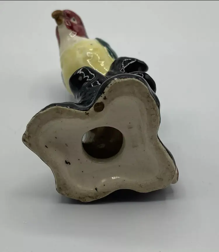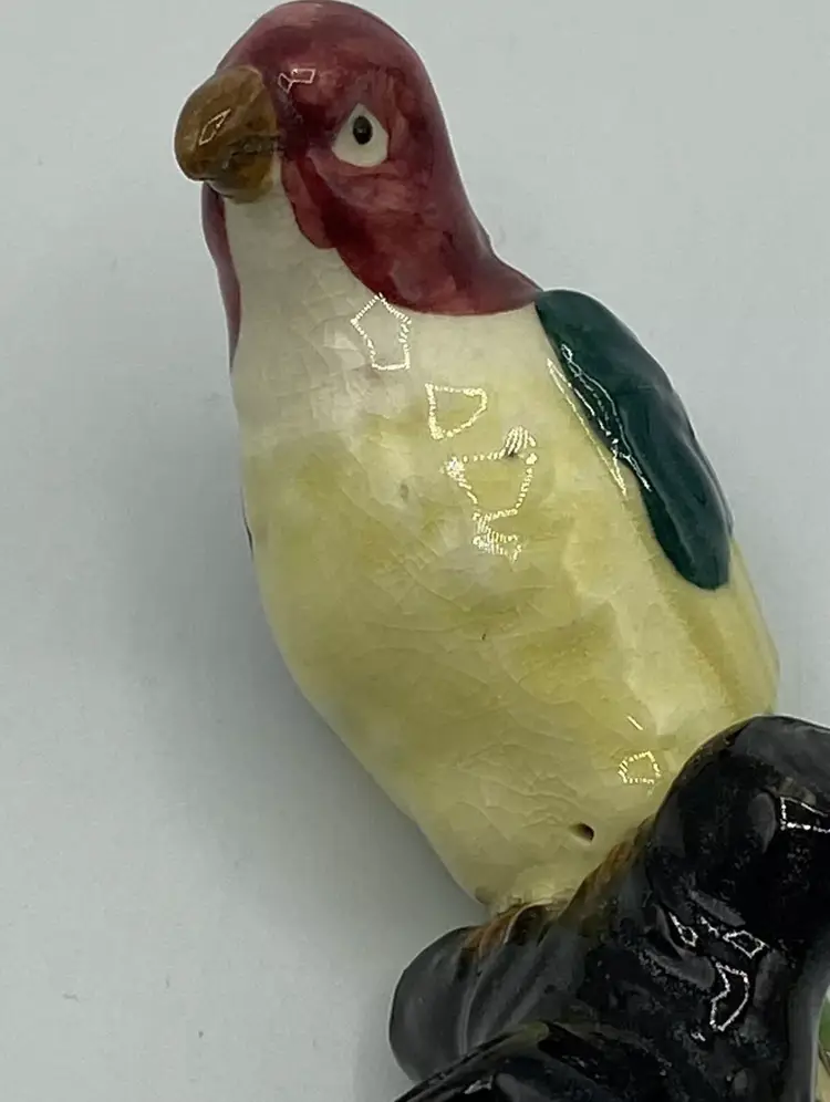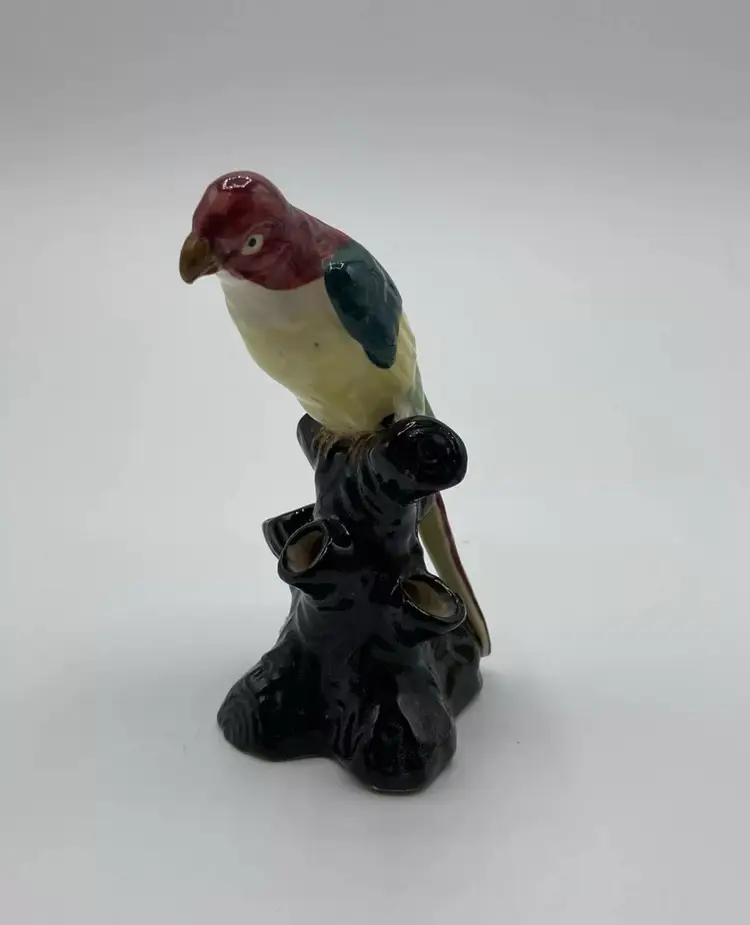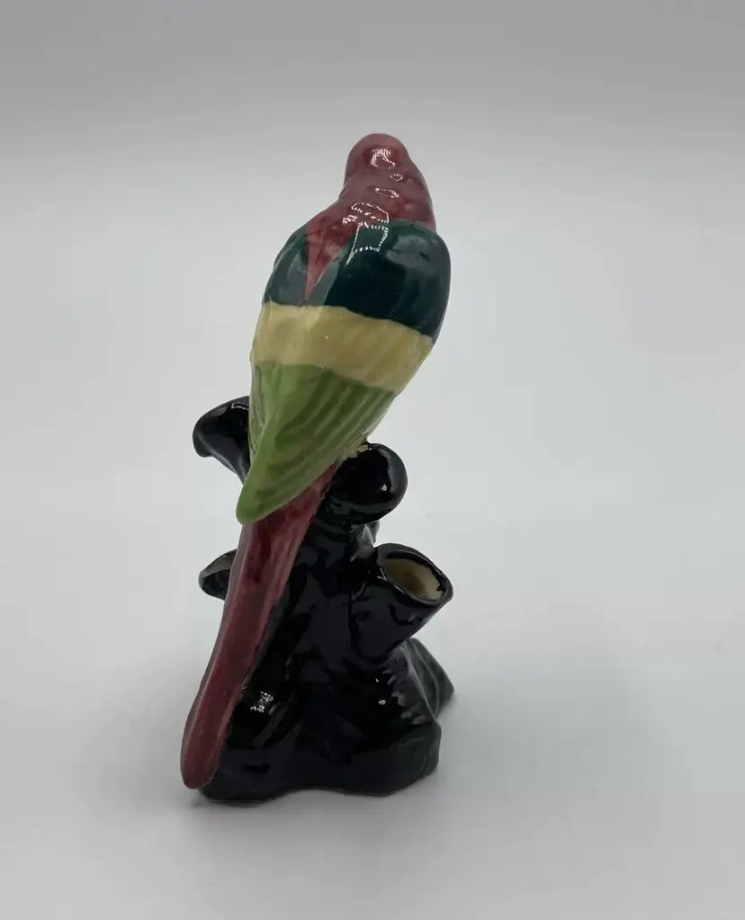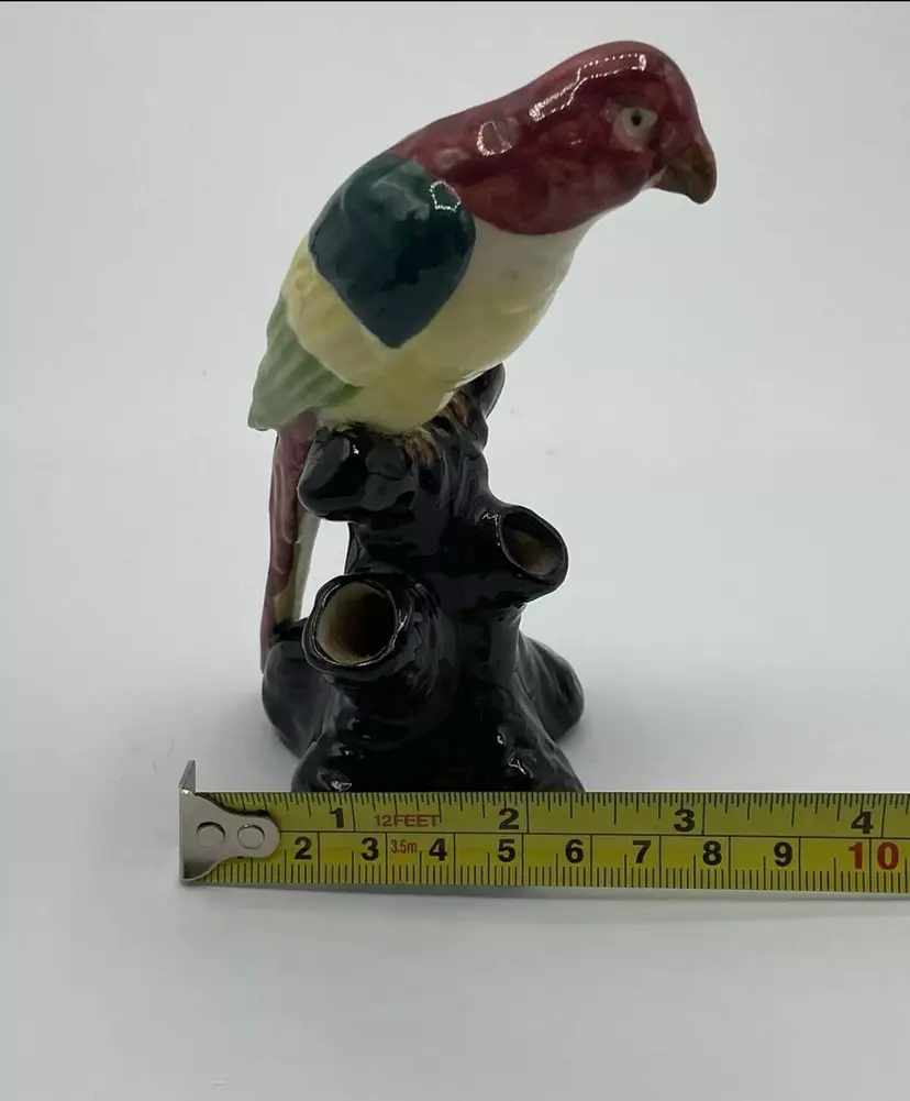 Ceramic Flower Frog Vintage Parrot On Black Stump Unmarked. Condition is "Used". No chips or cracks. Crazing is consistent with age.