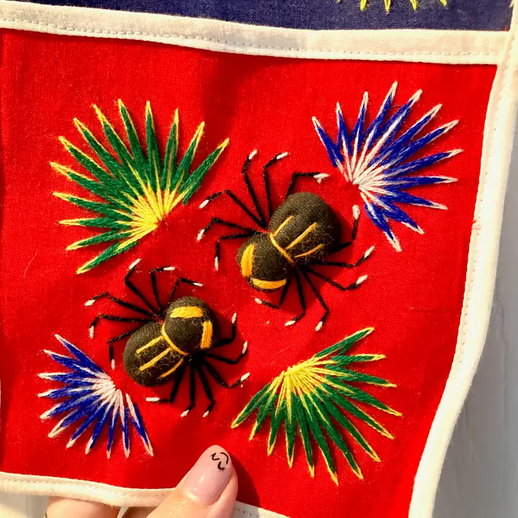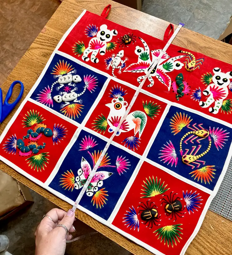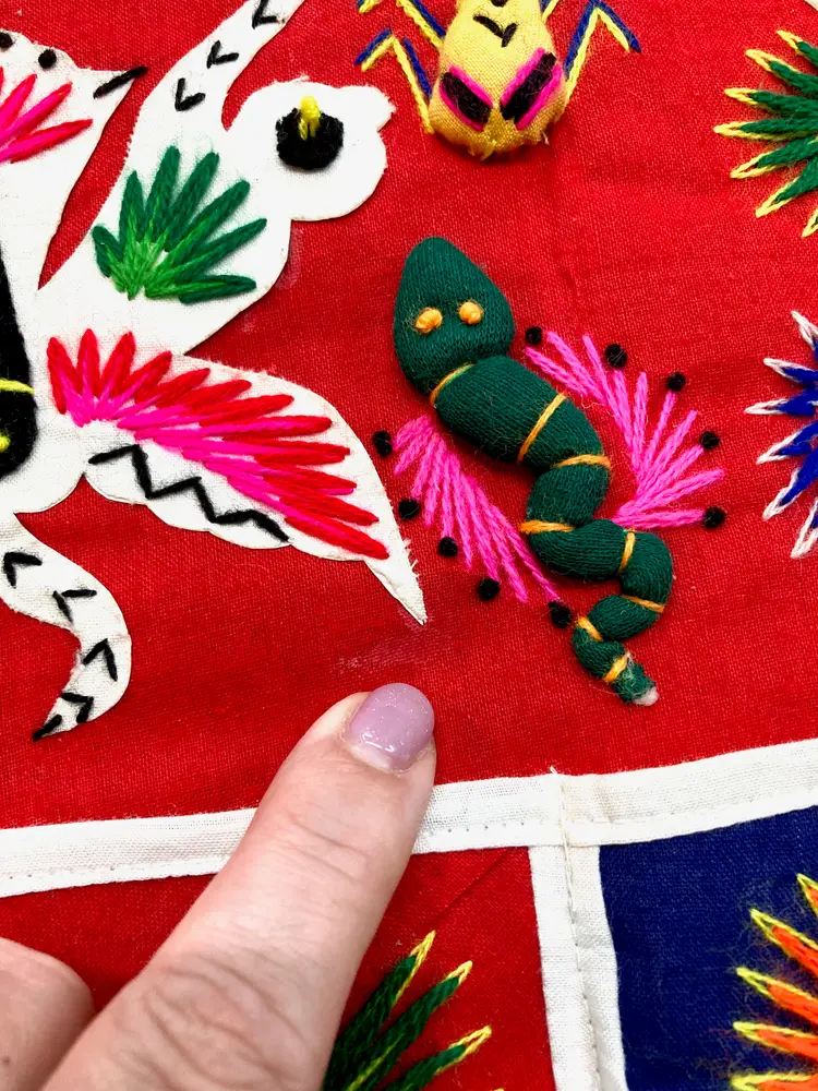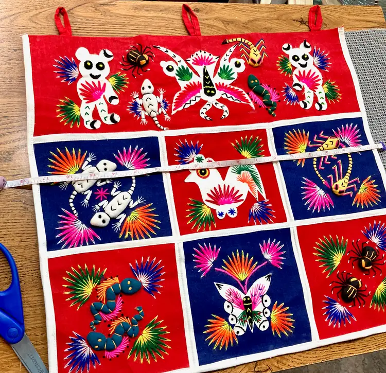 Vintage Folk Art Tapestry Mail Organizer: Embroidered 3D Animals Bugs