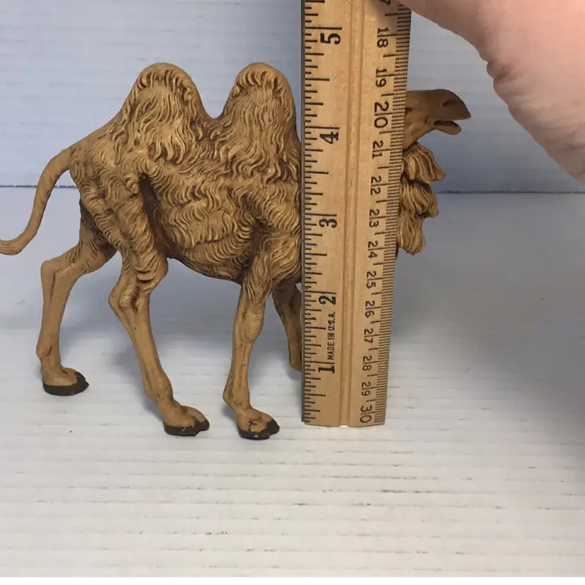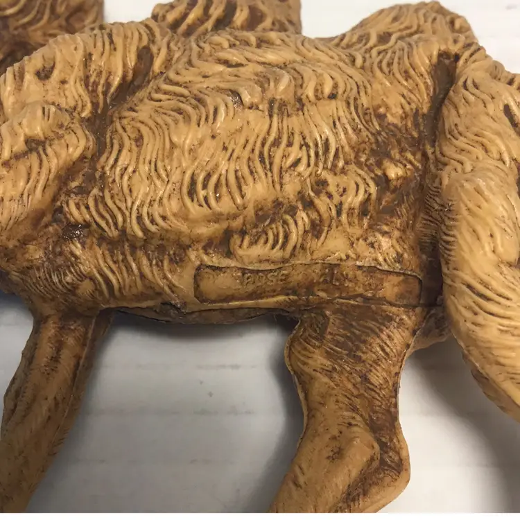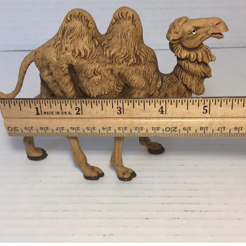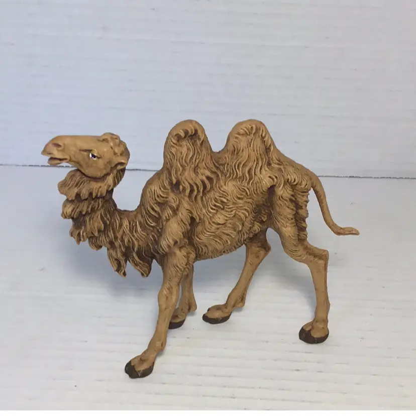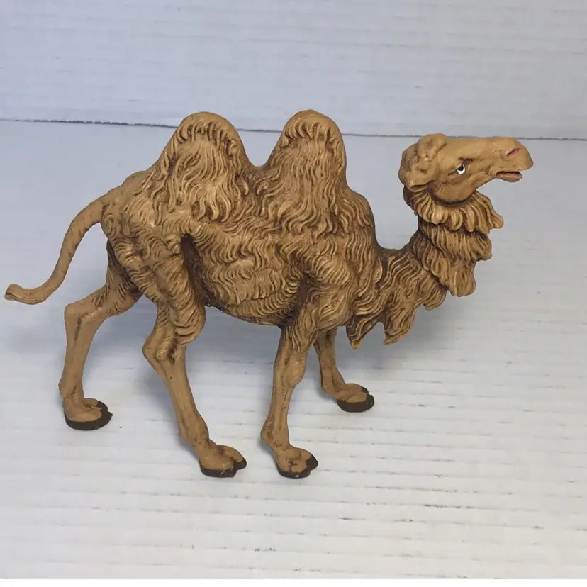 This is a Fontanini camel made of resin or rubbery plastic. It’s from 1983, signed on the underside. It’s in good condition with just a couple little scratches on the hooves. It measures a little over 4.5” and is about 5.5” wide. Please see pictures for details. It would make a great addition to any nativity scene.