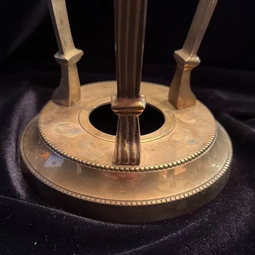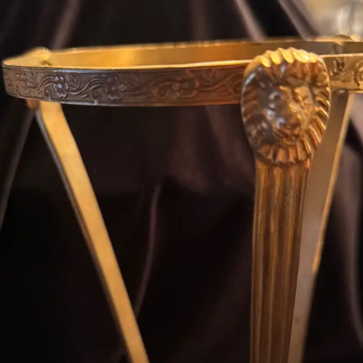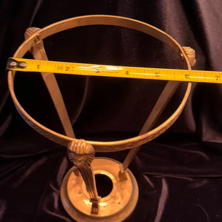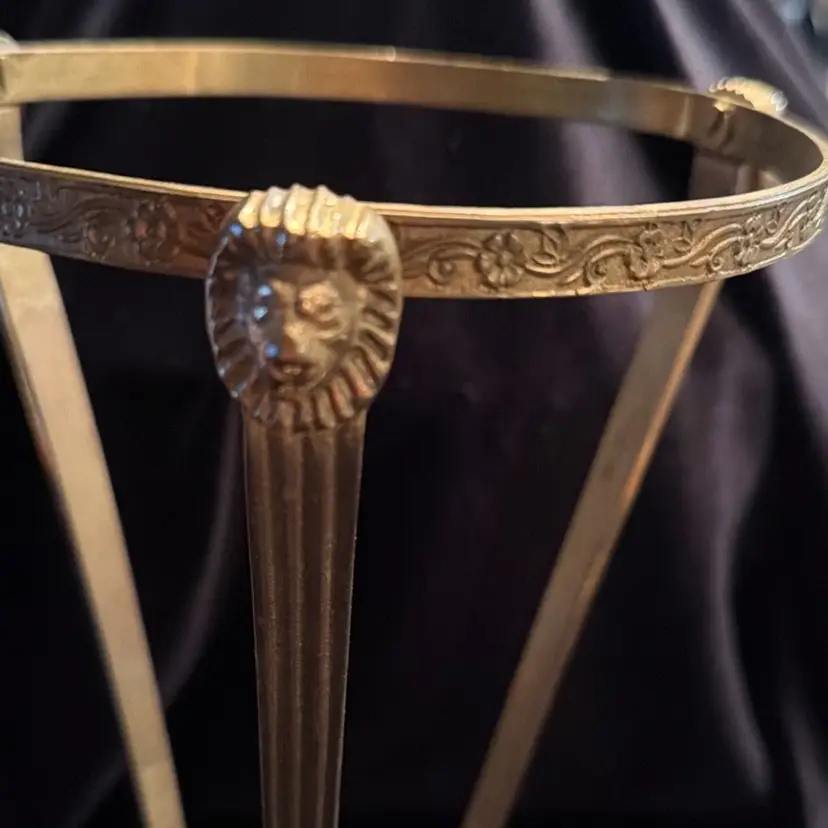 Vintage Footed Brass Stand Holder w Three Lion Heads Made In India. 9.5”