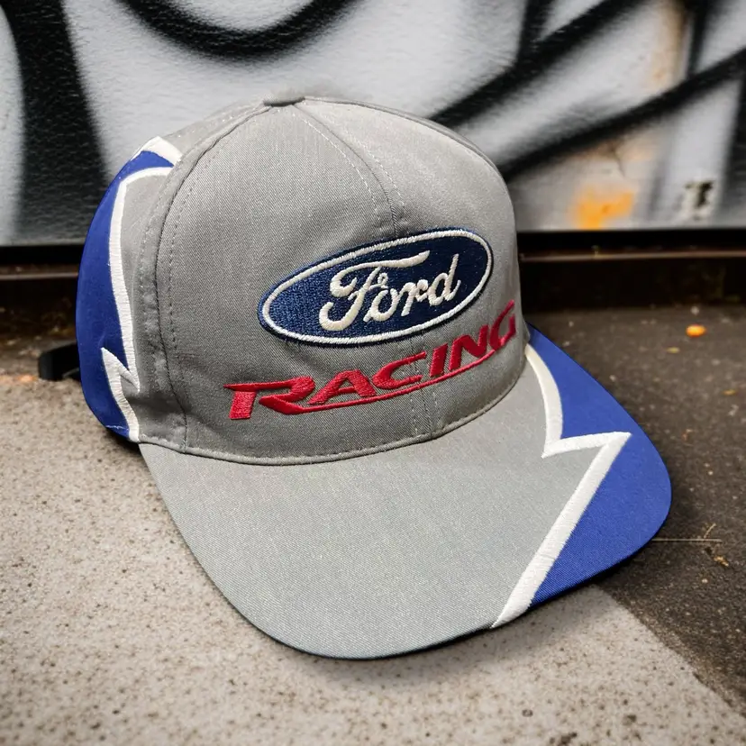 Here We Have a Vintage Ford Racing Snapback Hat Jagged Edge Shockwave Hat Nascar Checkered Flag