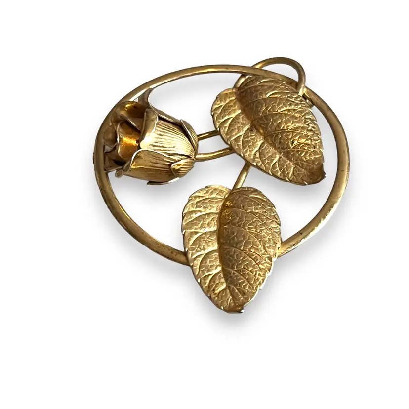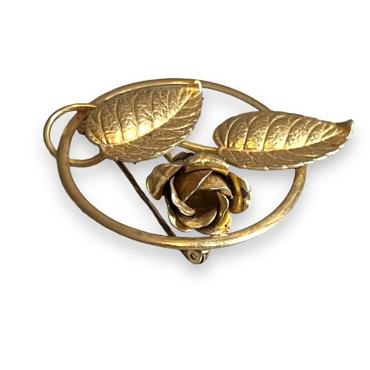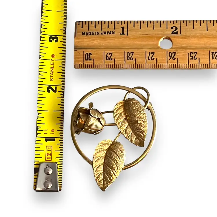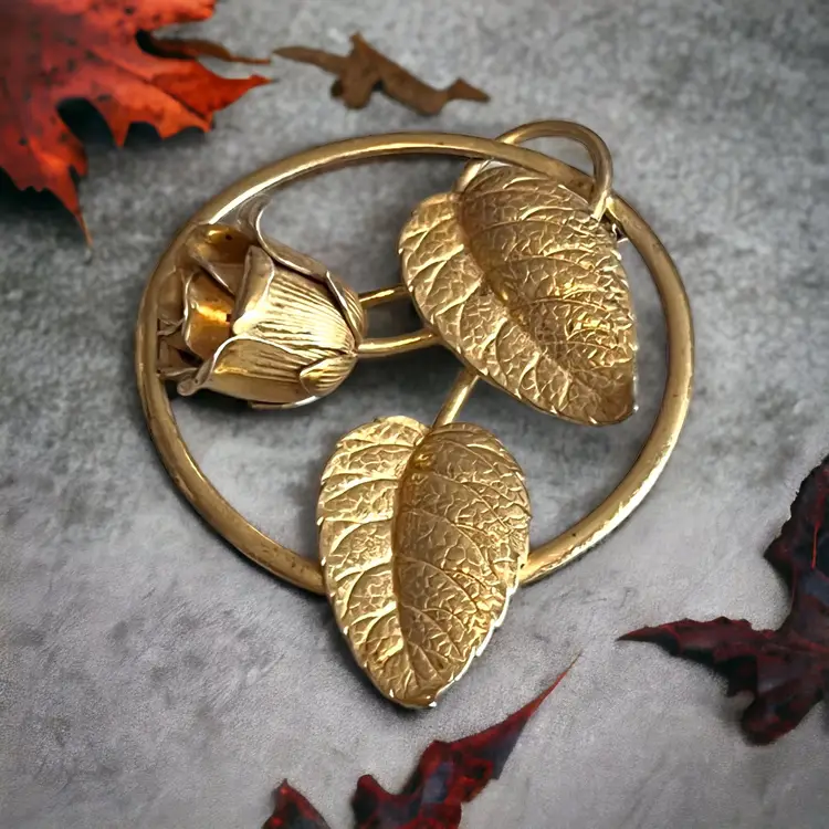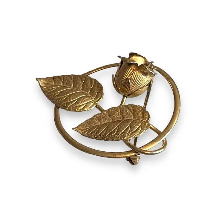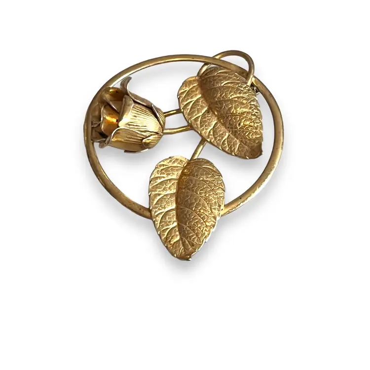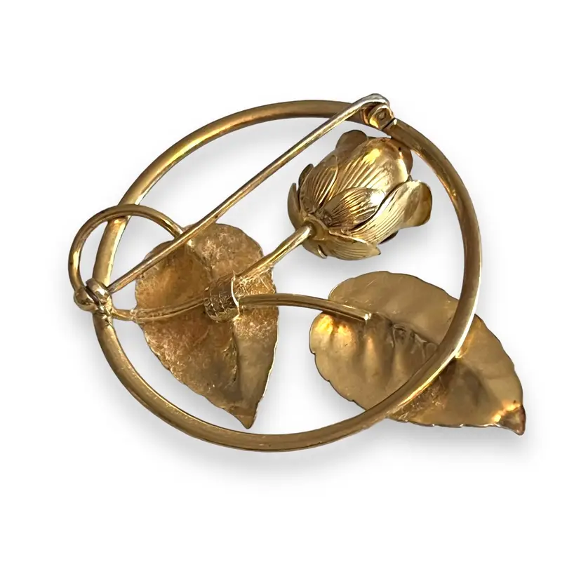 Here We Have a Vintage Forstner Sterling Gold Tone Brooch Rose Flower Circle Setting MCM