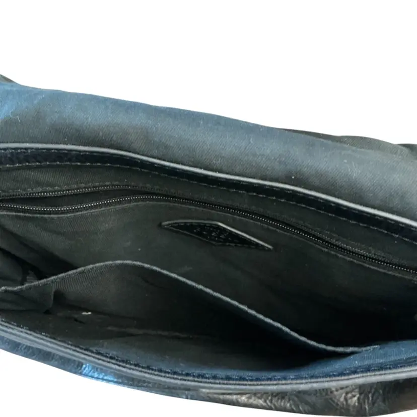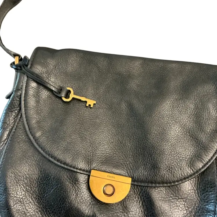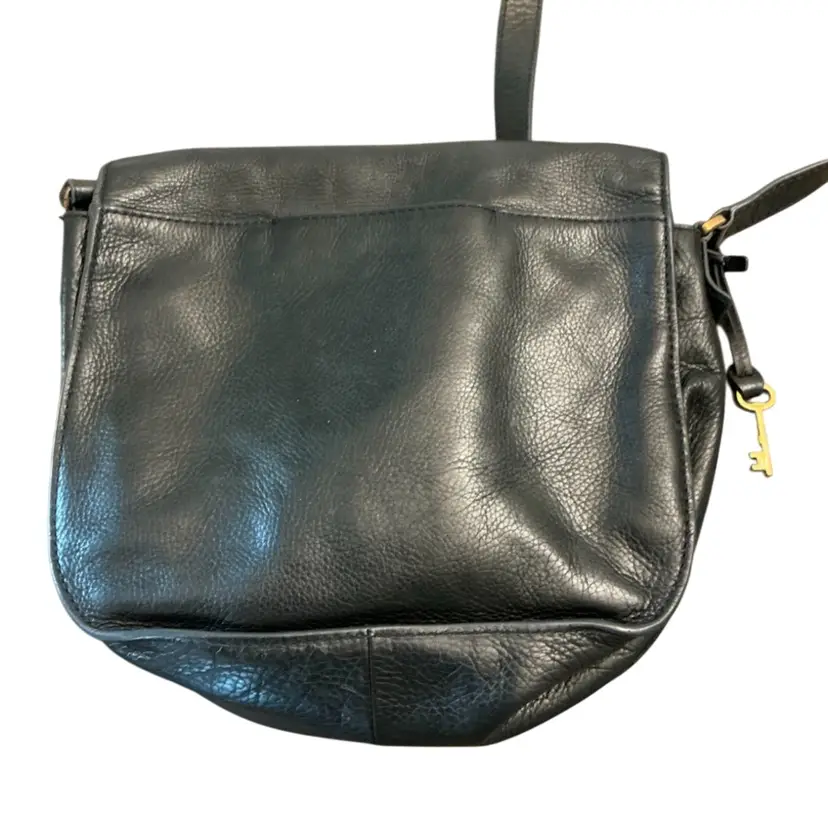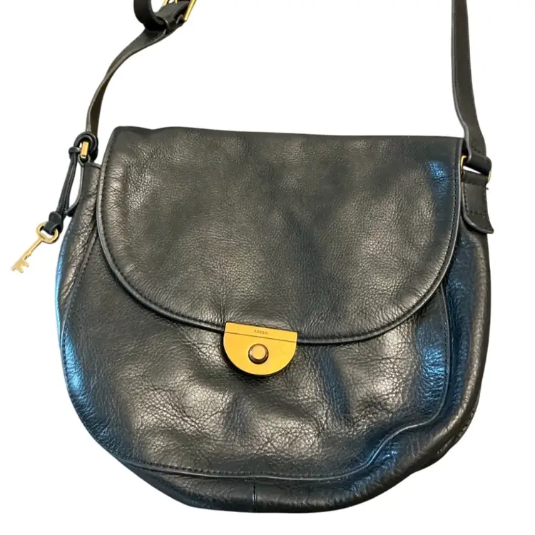 Gently used vintage saddlebag style crossbody bag with adjustable shoulder strap with original key charm. 10 1/2” x 11.” The hang from the shoulder is currently set at 17.”