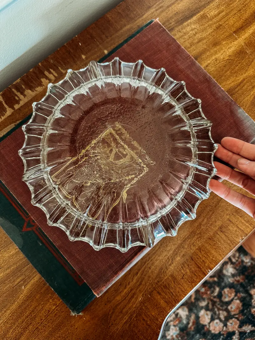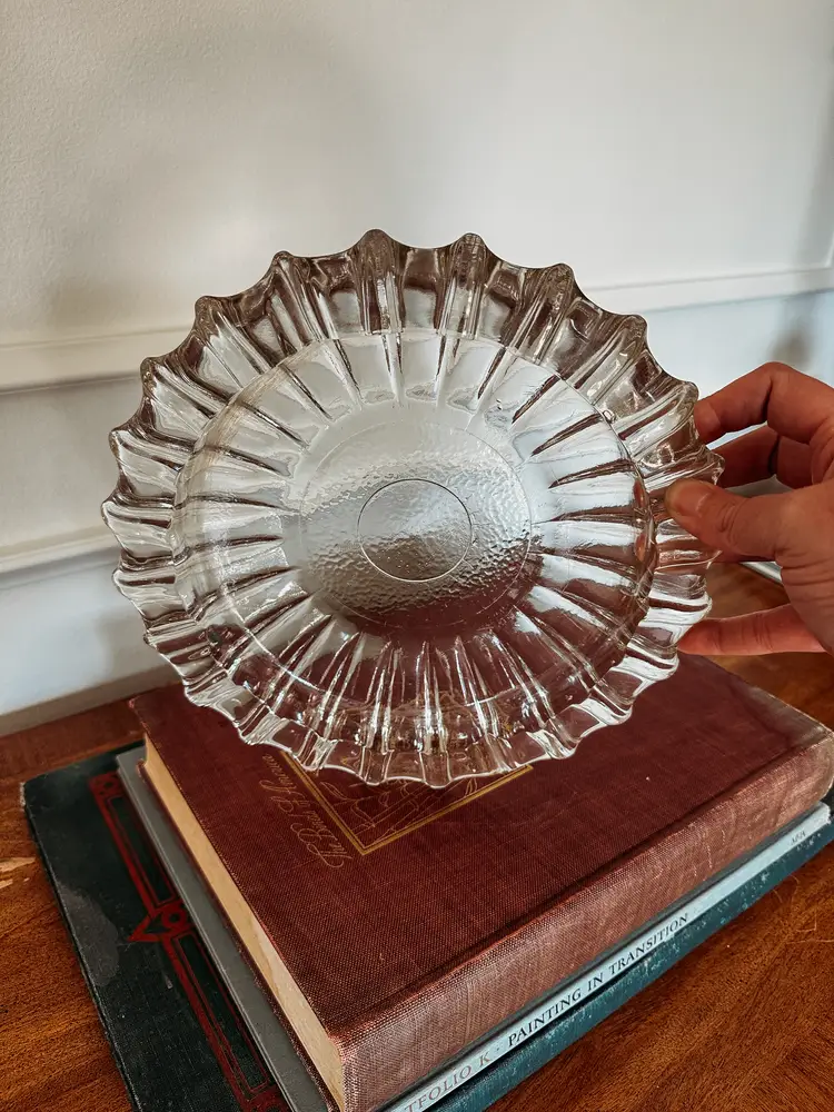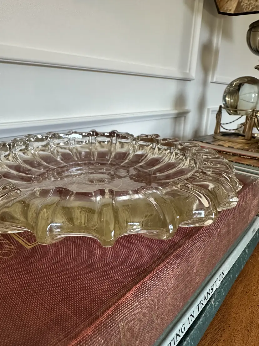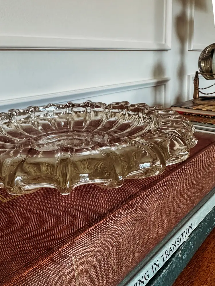 Vintage Fostoria 10" Large 1940's Round Ashtray In a Pressed Clear Glass Design