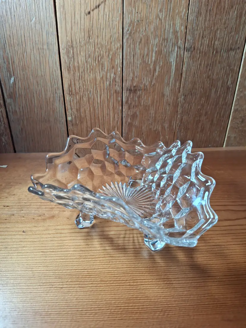 Vintage Fostoria American 3-Toed Tricorne Bowl. A beautiful pattern in excellent condition. It is 3" tall and 6 1/2" wide. No chips, cracks, or repairs. Please view the pictures and feel free to ask questions. Thank you for visiting my shop.