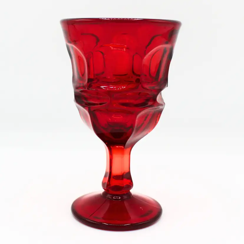 (Set of 4) Vintage Fostoria Argus Ruby Red Cordial Glass, 4 oz Dessert Wine Glass, Thumbprint / Honeycomb Pattern, Mid Century Barware, Elegant Cocktail Stemware
