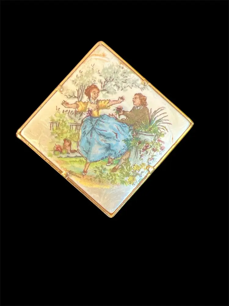 Vintage Fragonard Limoges Square Porcelain Gold Tone Trombone 2 Scatter Brooch's #B-2