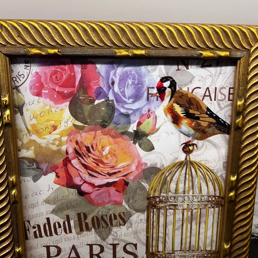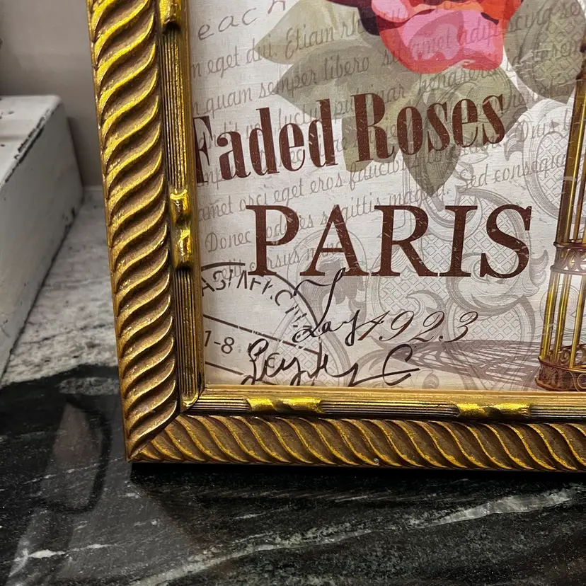 Upcycled by me! Added the beautiful art and waxed frame Approx 10x12