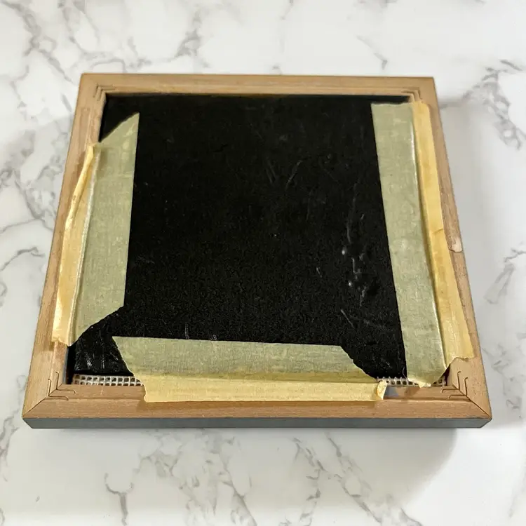 Very good condition. Minor wear on the frame. Measures 6x6 inches.