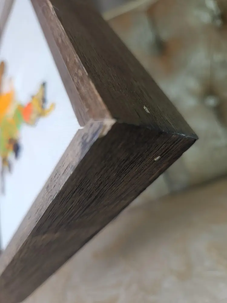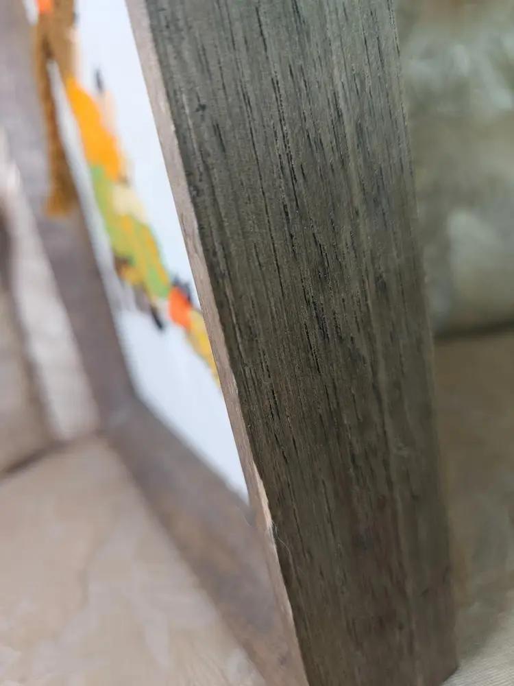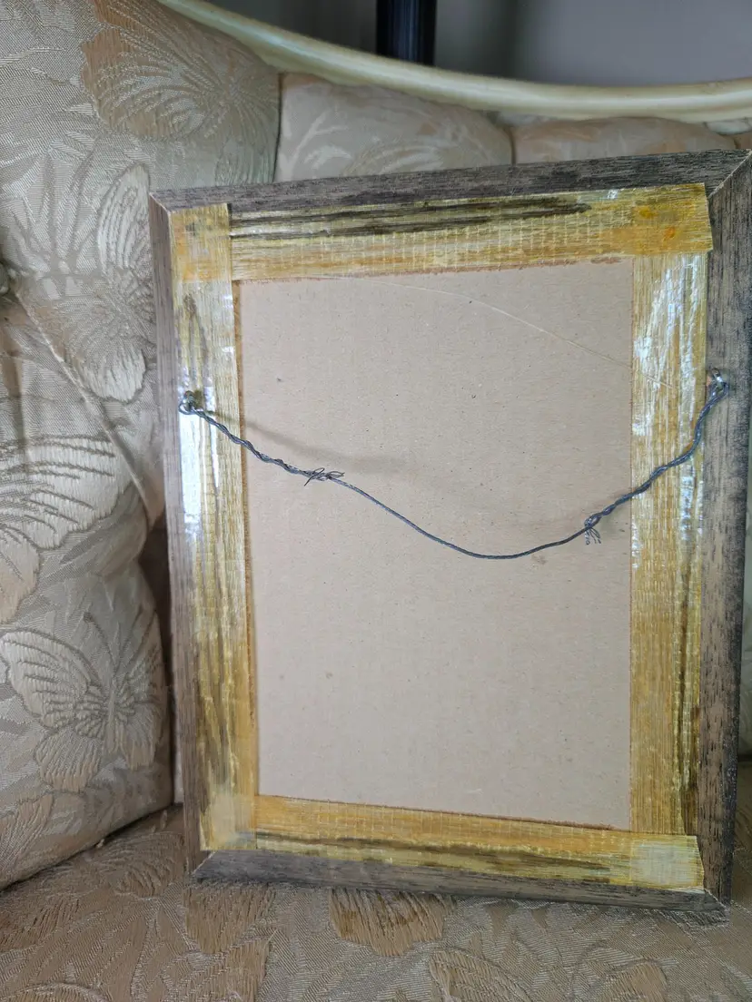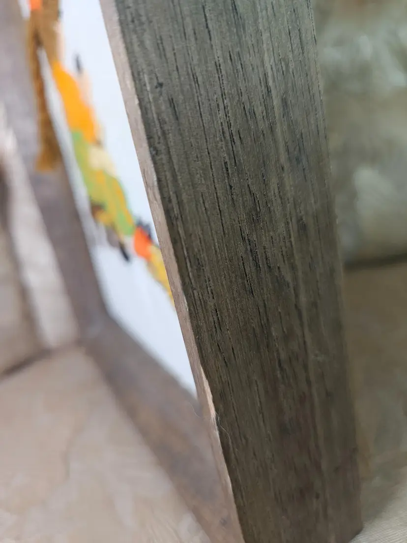 Charming vintage embroidery featuring a girl with a cat, beautifully framed in rustic wood. Perfect for adding a touch of nostalgia to your home decor. Excellent condition with vibrant colors. There is some old masking tape on the back that needs to be replaced to hold the picture in the frame. The wood has a few small nicks.