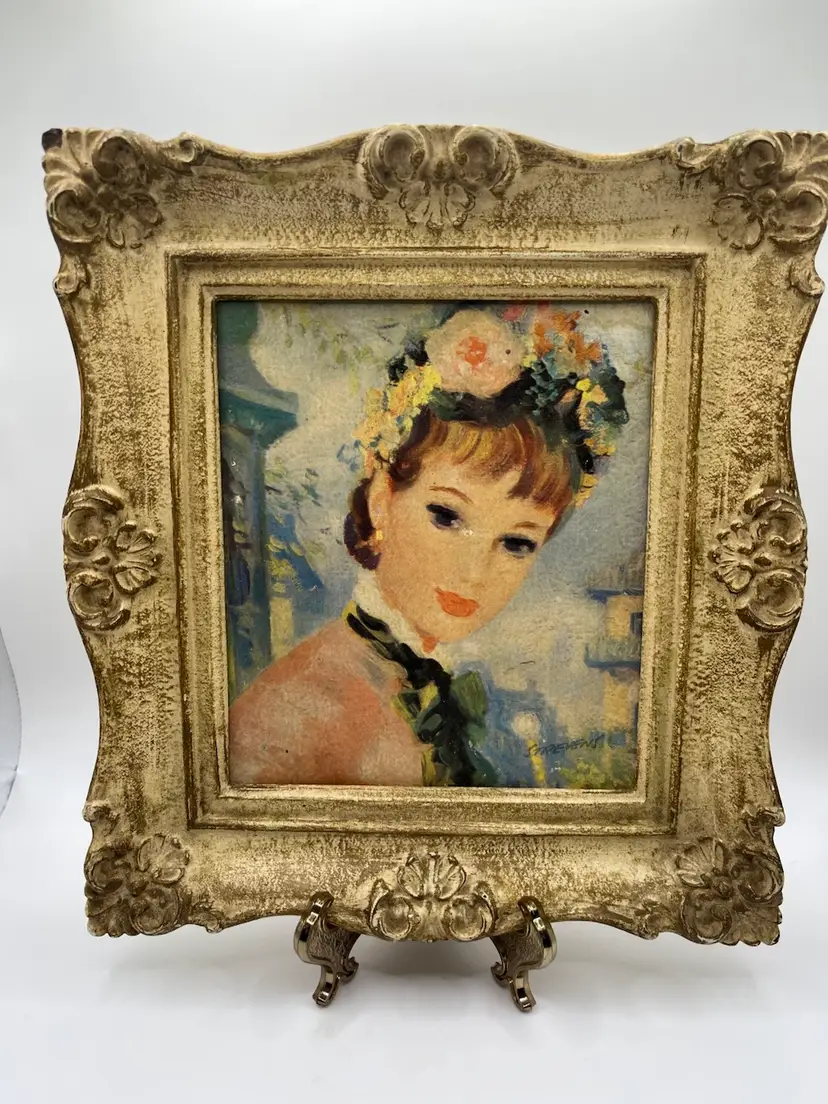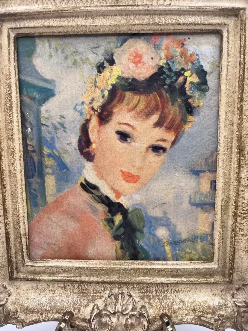This piece exemplifies Strevens' characteristic style, featuring a stylized portrait of a Victorian woman adorned with a floral hat.