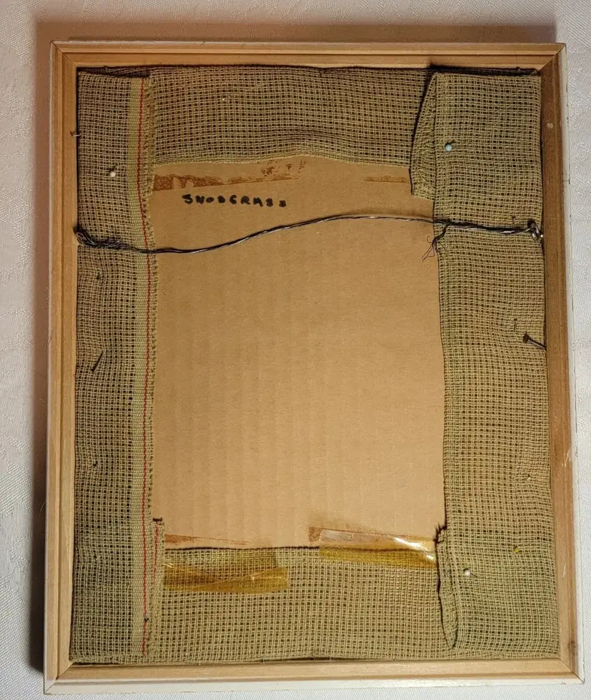 The artwork is a perfect addition to any collection of vintage or handmade crafts. It is a unique piece that showcases the creativity and fine craftsmanship that went into making it. The artwork was made in the United States and is a great example of needlepoint embroidery.
