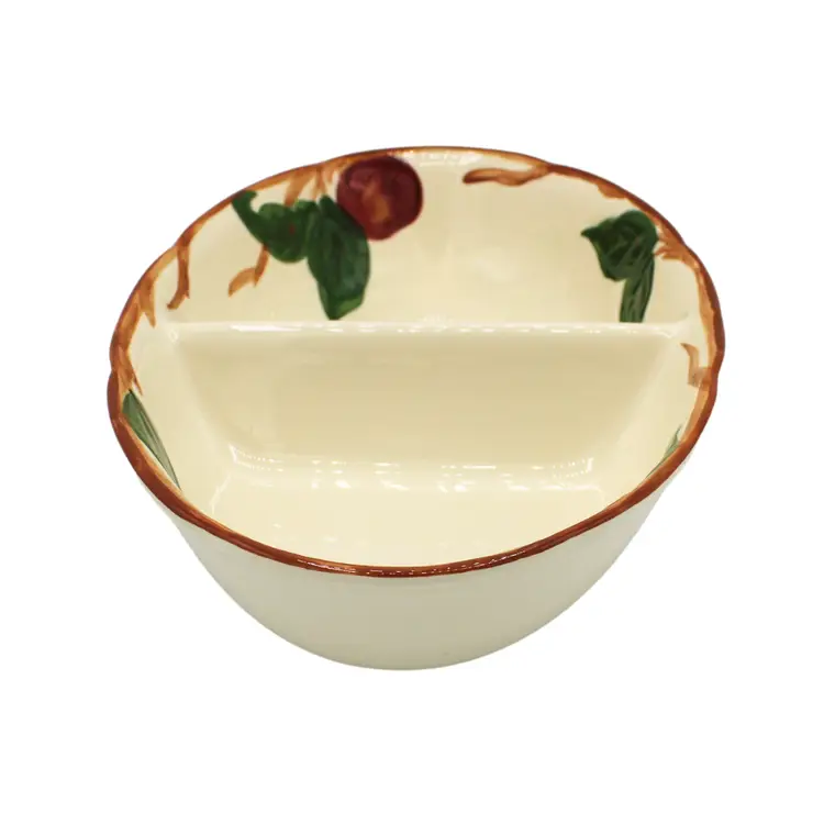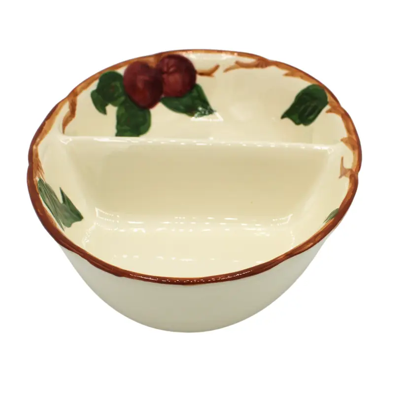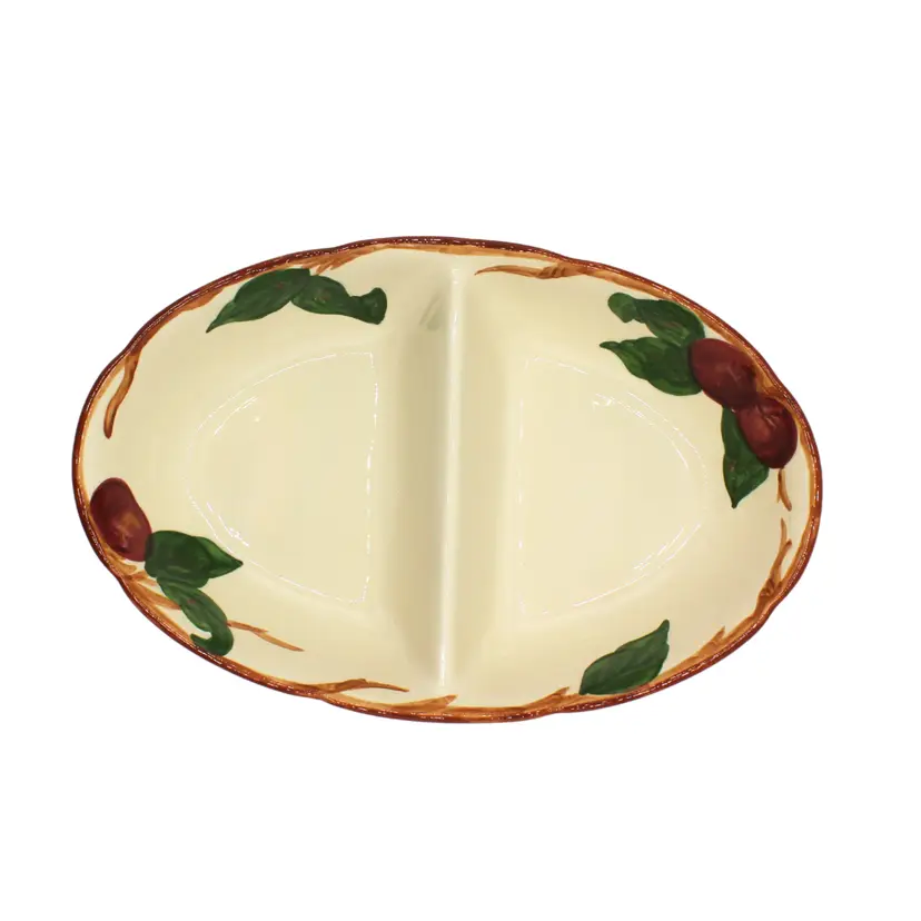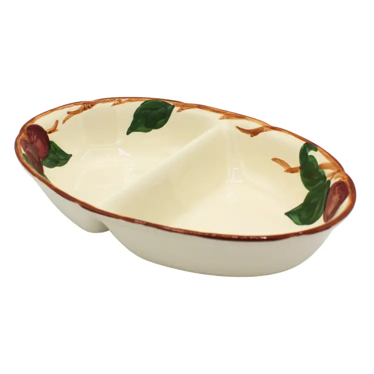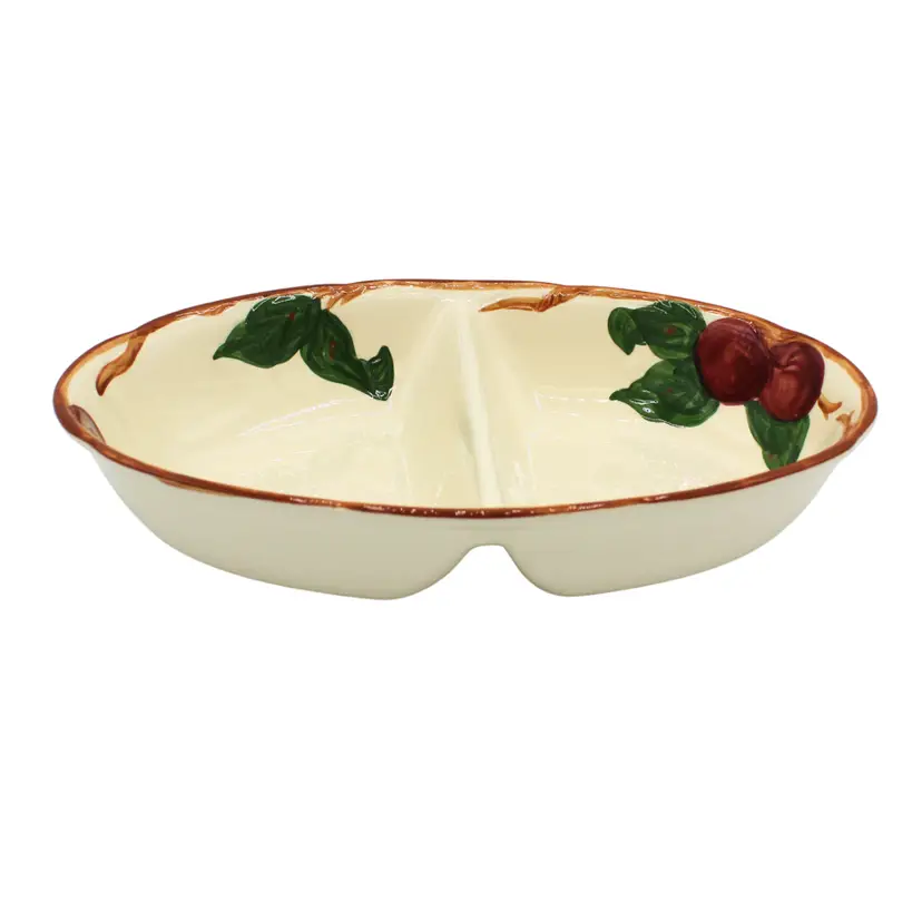 Franciscan Apple Divided Oval Serving Dish – Hand Painted Stoneware Relish Bowl, 1974-75