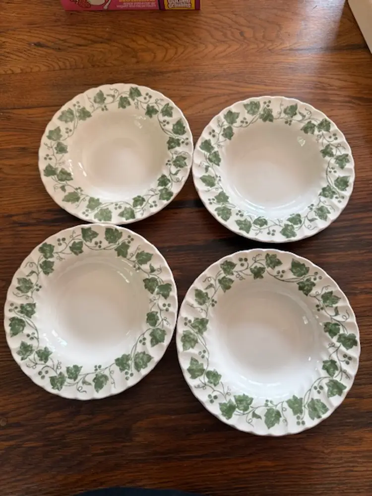 Vintage Franciscan Ivy Rimmed Soup Bowls – Set of 4 – 8.5" – Mid-Century Earthenware Dinnerware