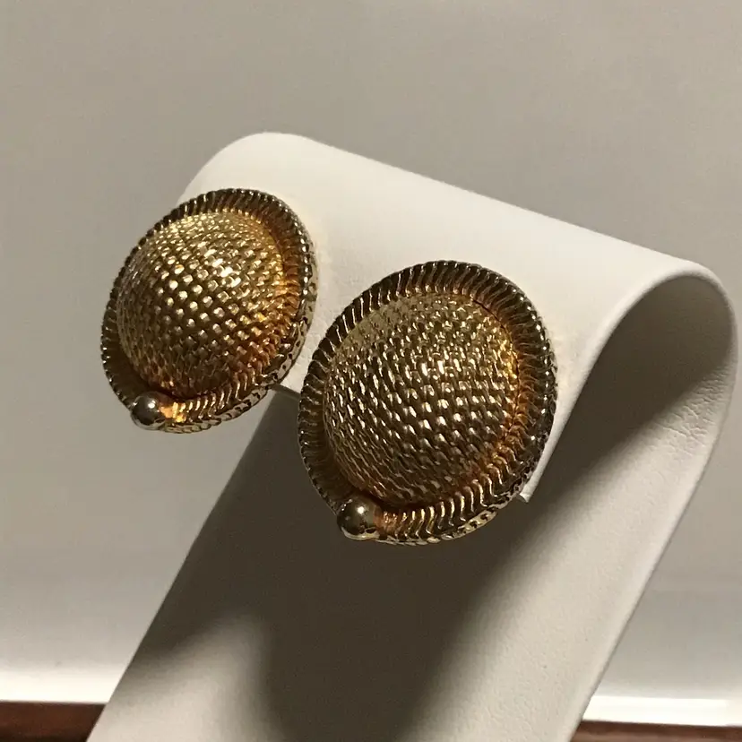 Gold tone high-end line produced by Coro, features a tension adjustment screw/clip on for a perfect fit, 1950s era. #518