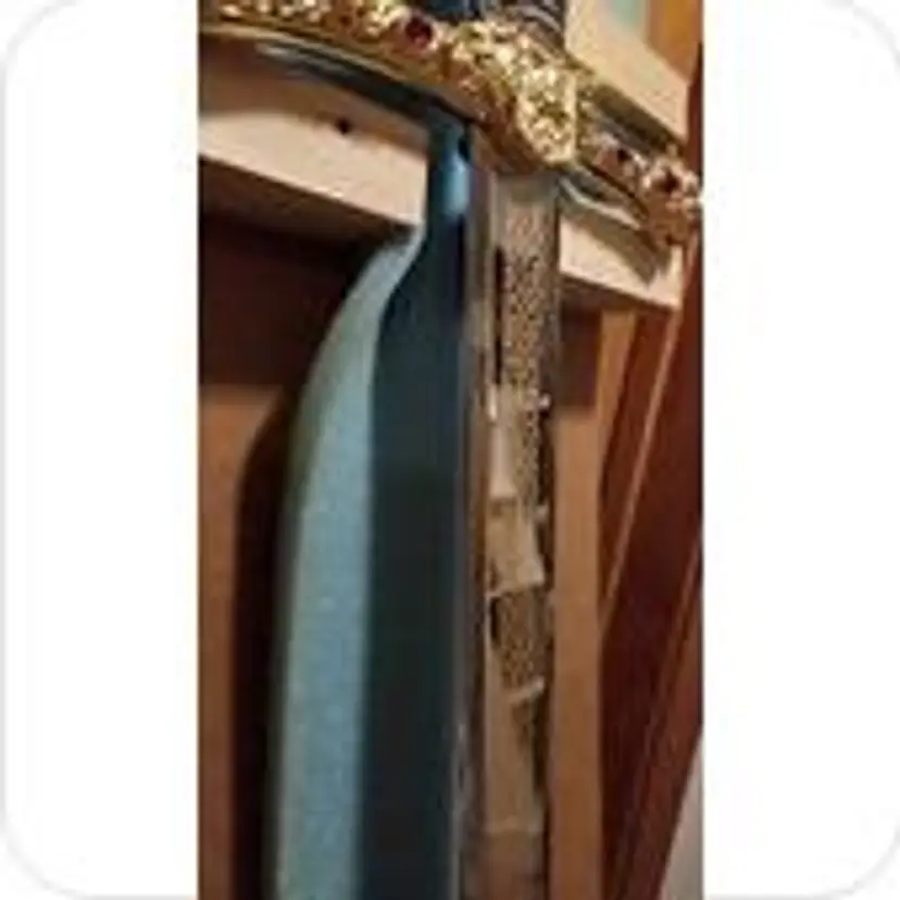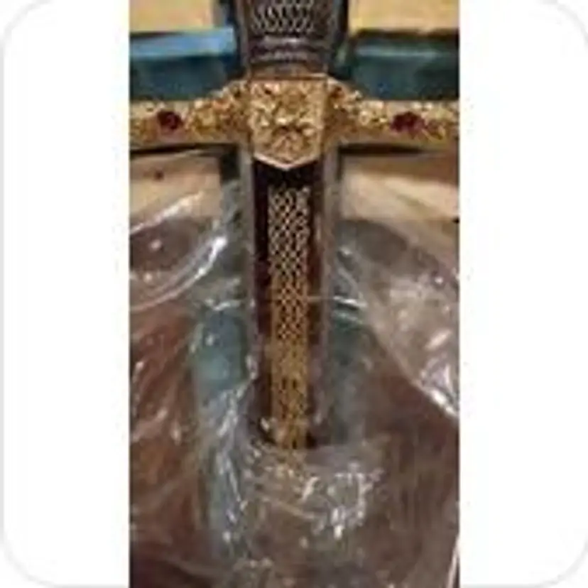 Sword Mounted on a Black Lacquered Plaque with a Clear Plastic Mount Representing the Water of the Lake that Arthur Commanded the Sword to be Cast Into