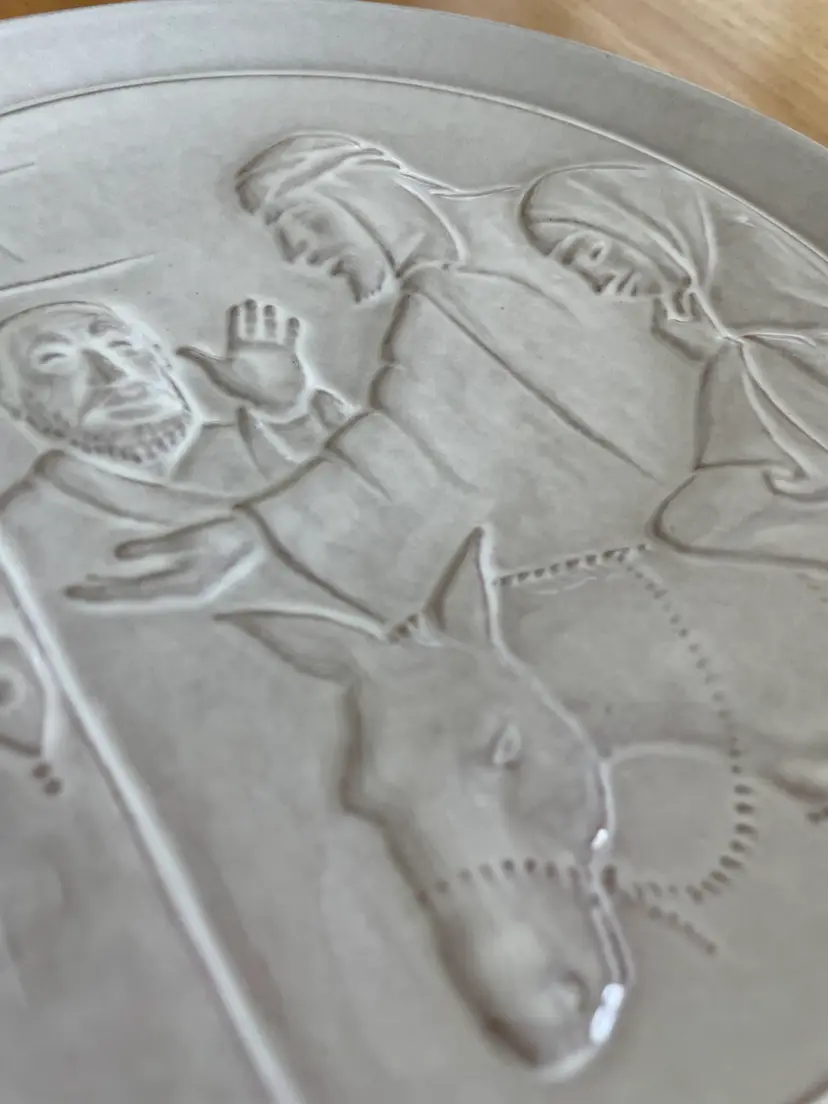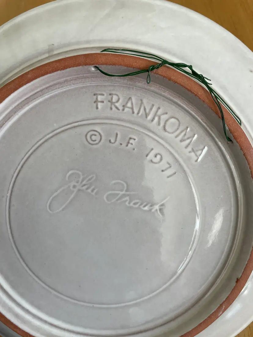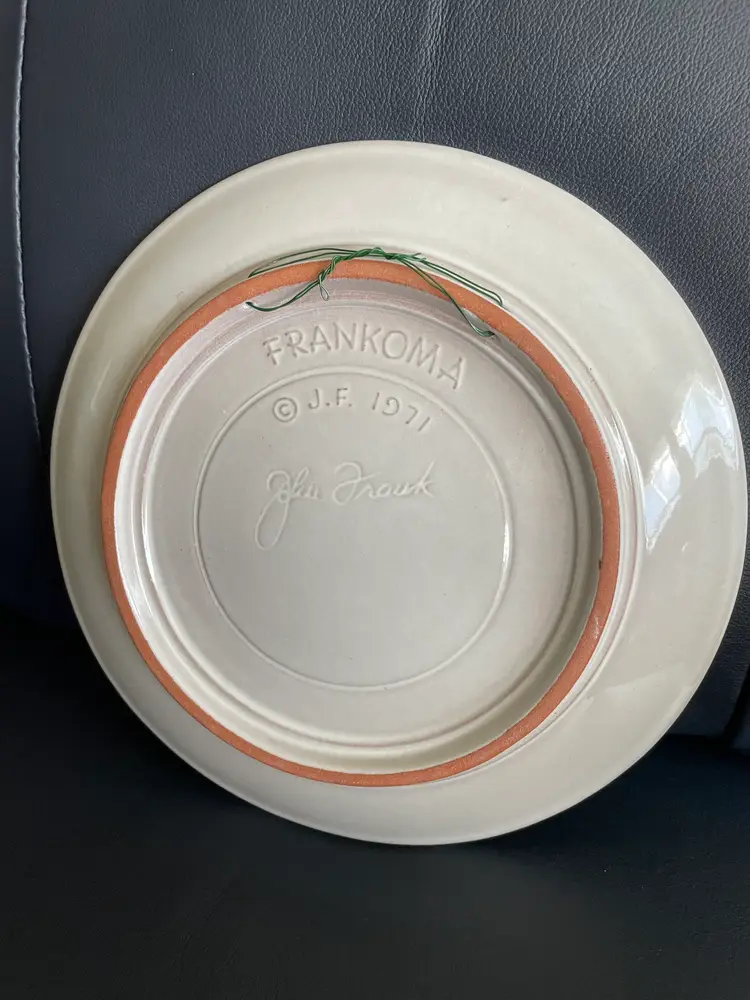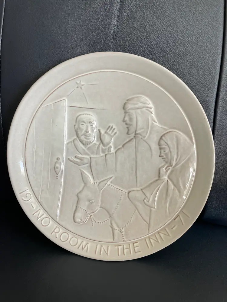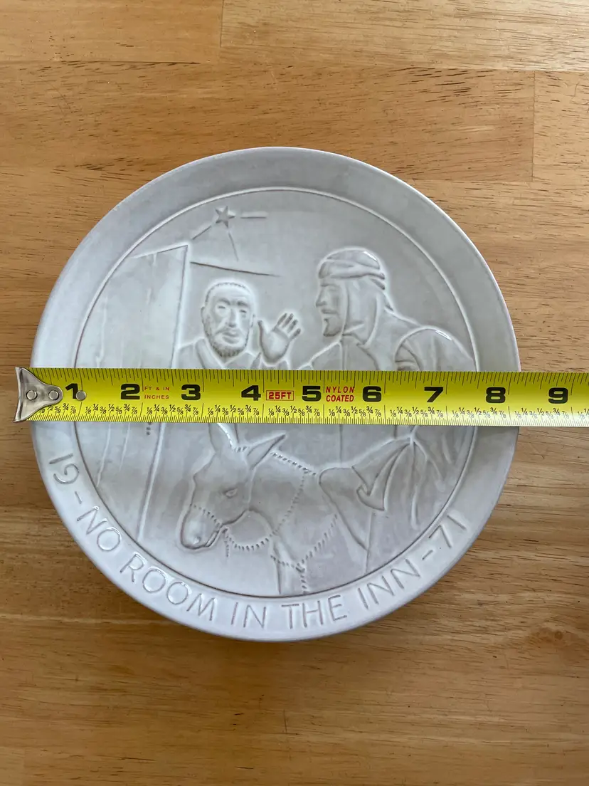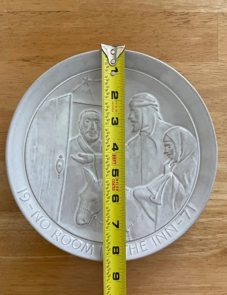 Frankoma Pottery vintage Christmas plate. Signed & dated on the bottom (J.F. 1971, see photos). Message: "No Room in the Inn."