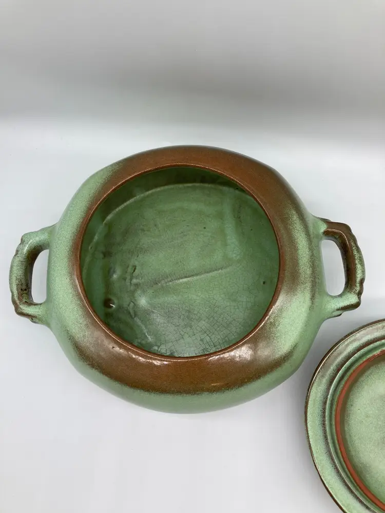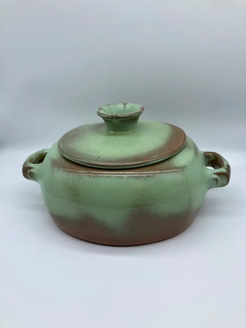 -Pre-owned, Great condition -5" tall, 10" long including handles, 8" wide, 5" opening -Lid has a loose fit