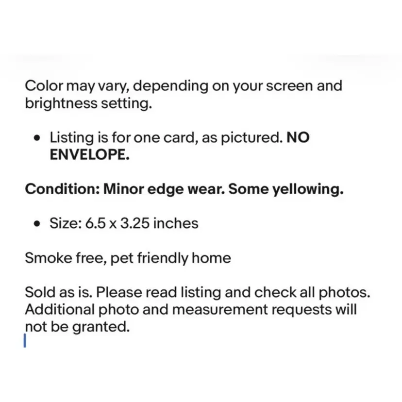 Listing is for one card, as pictured. NO ENVELOPE.